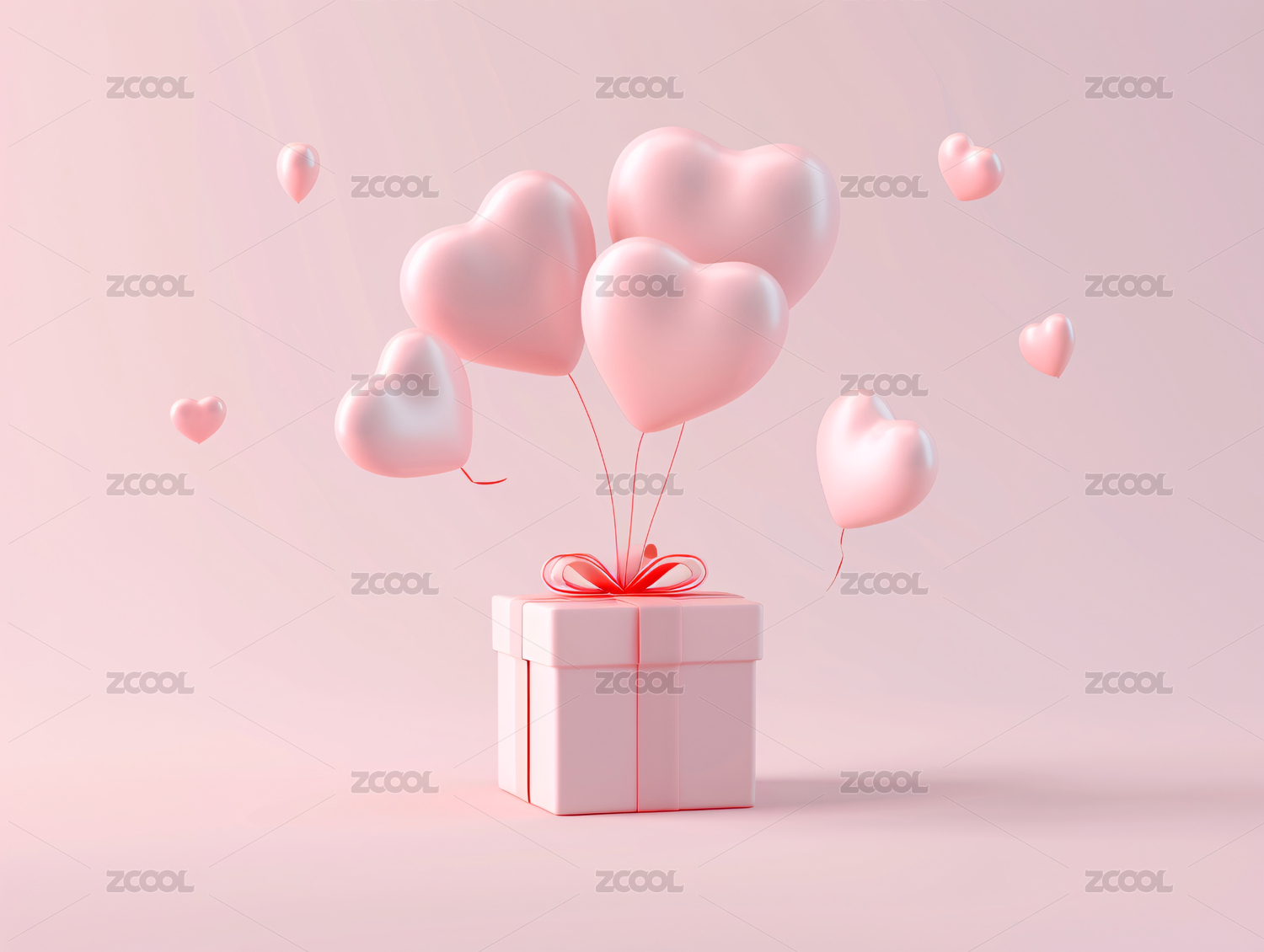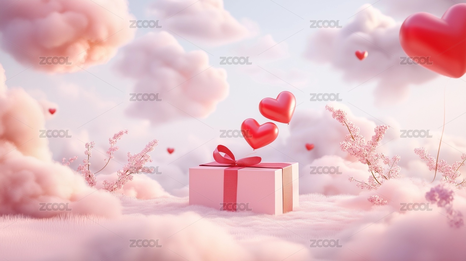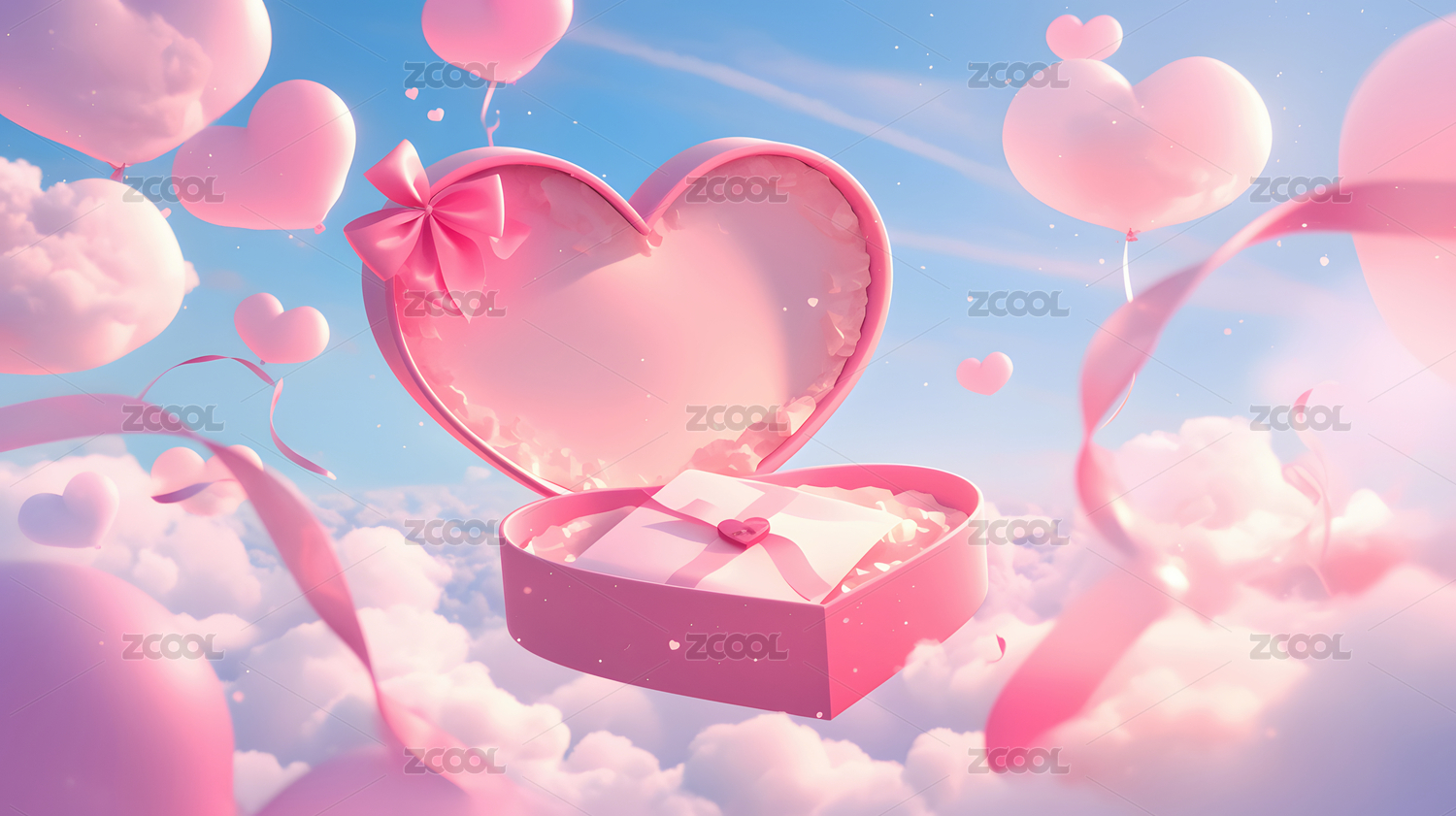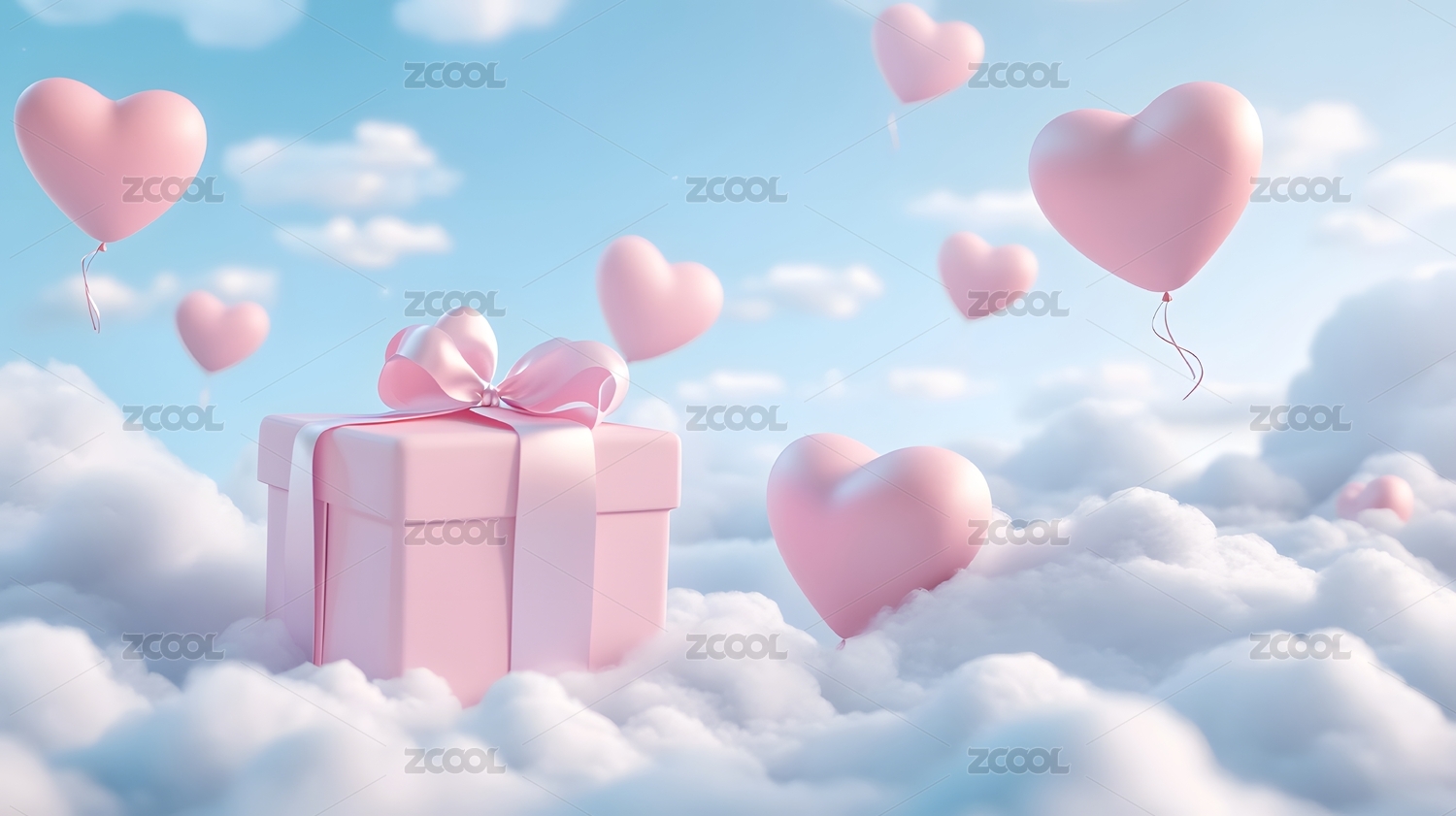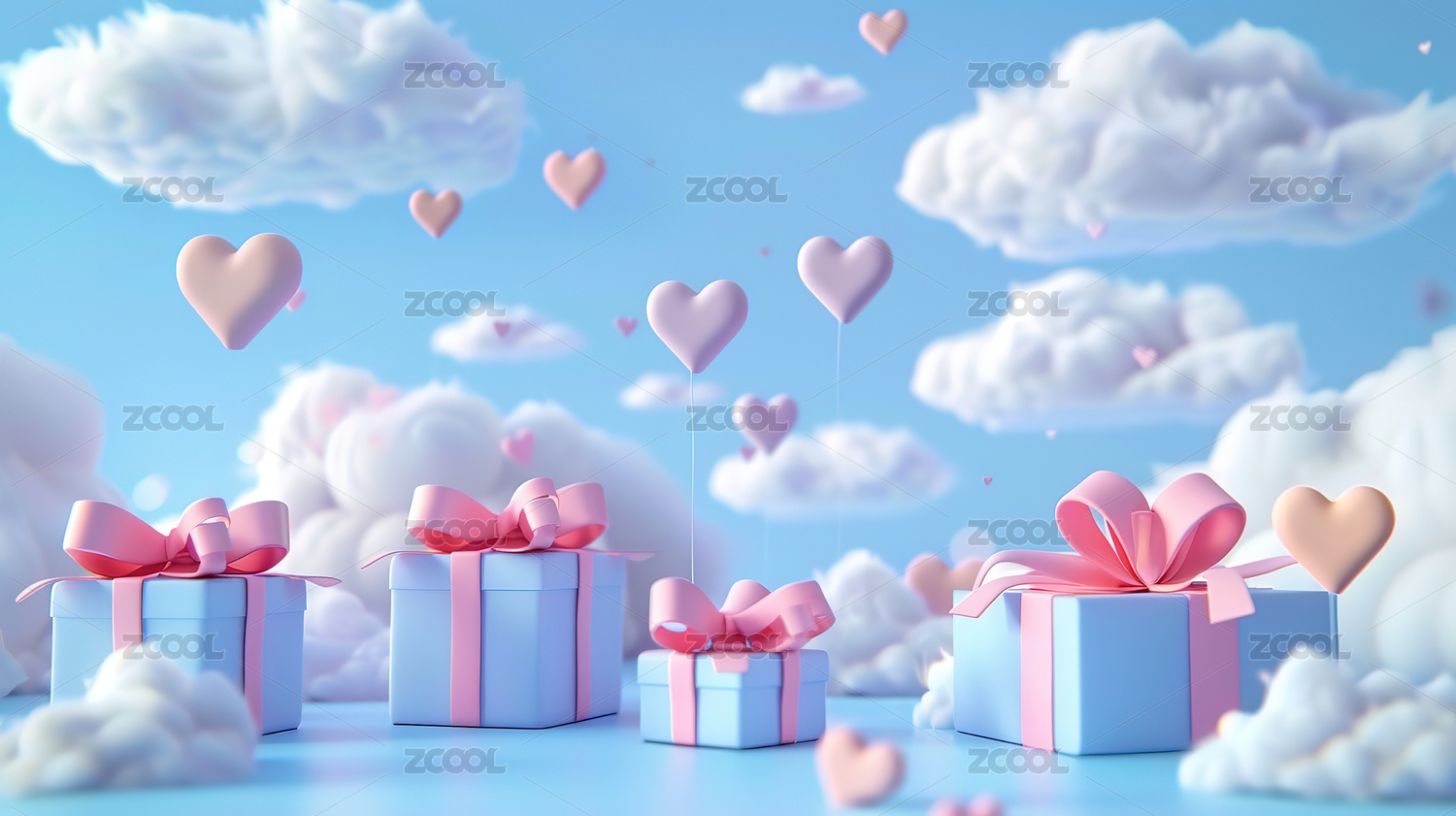 七夕情人节爱心气球浪漫礼物3D插画背景