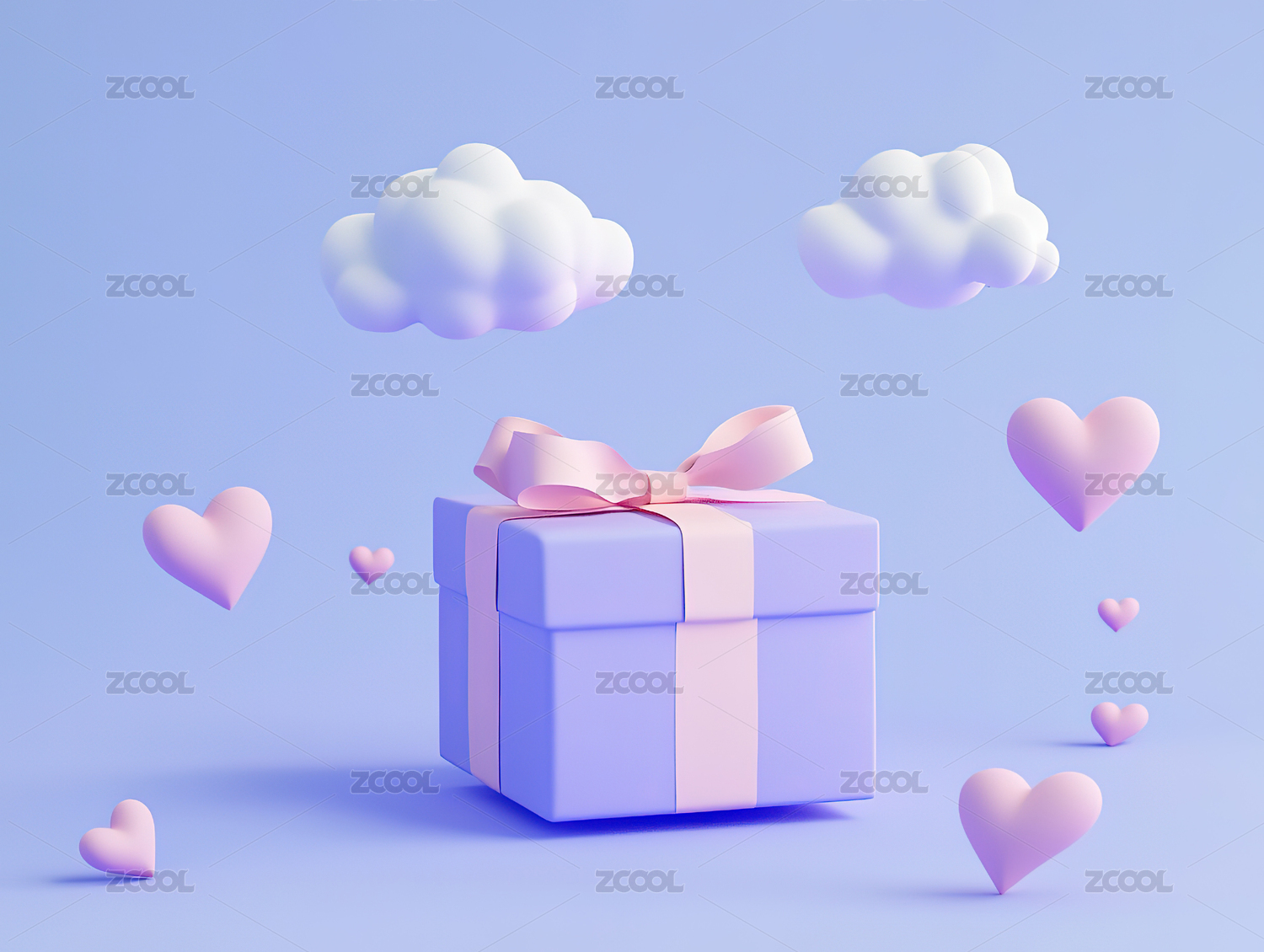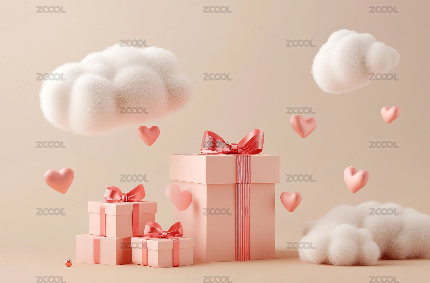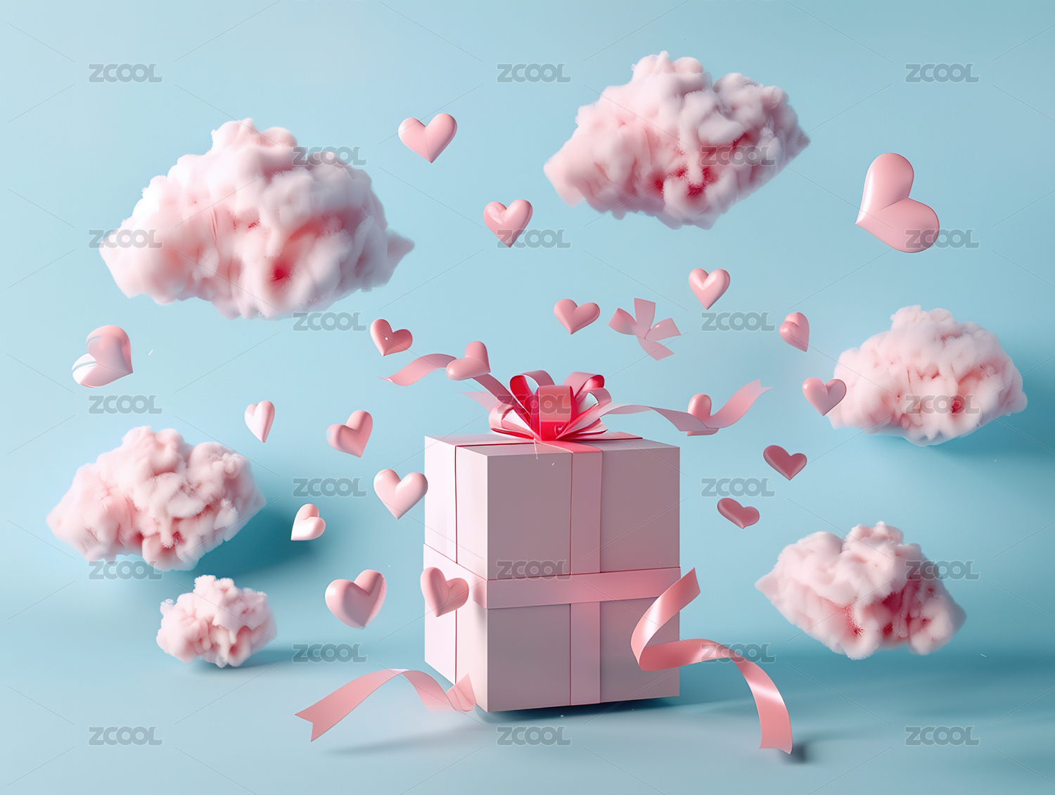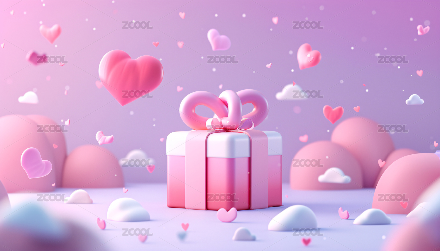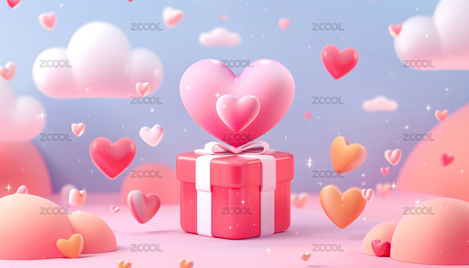 七夕情人节爱心气球浪漫礼物3D插画背景