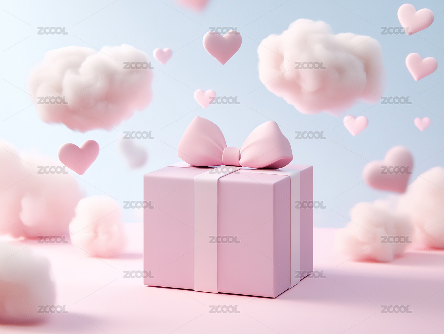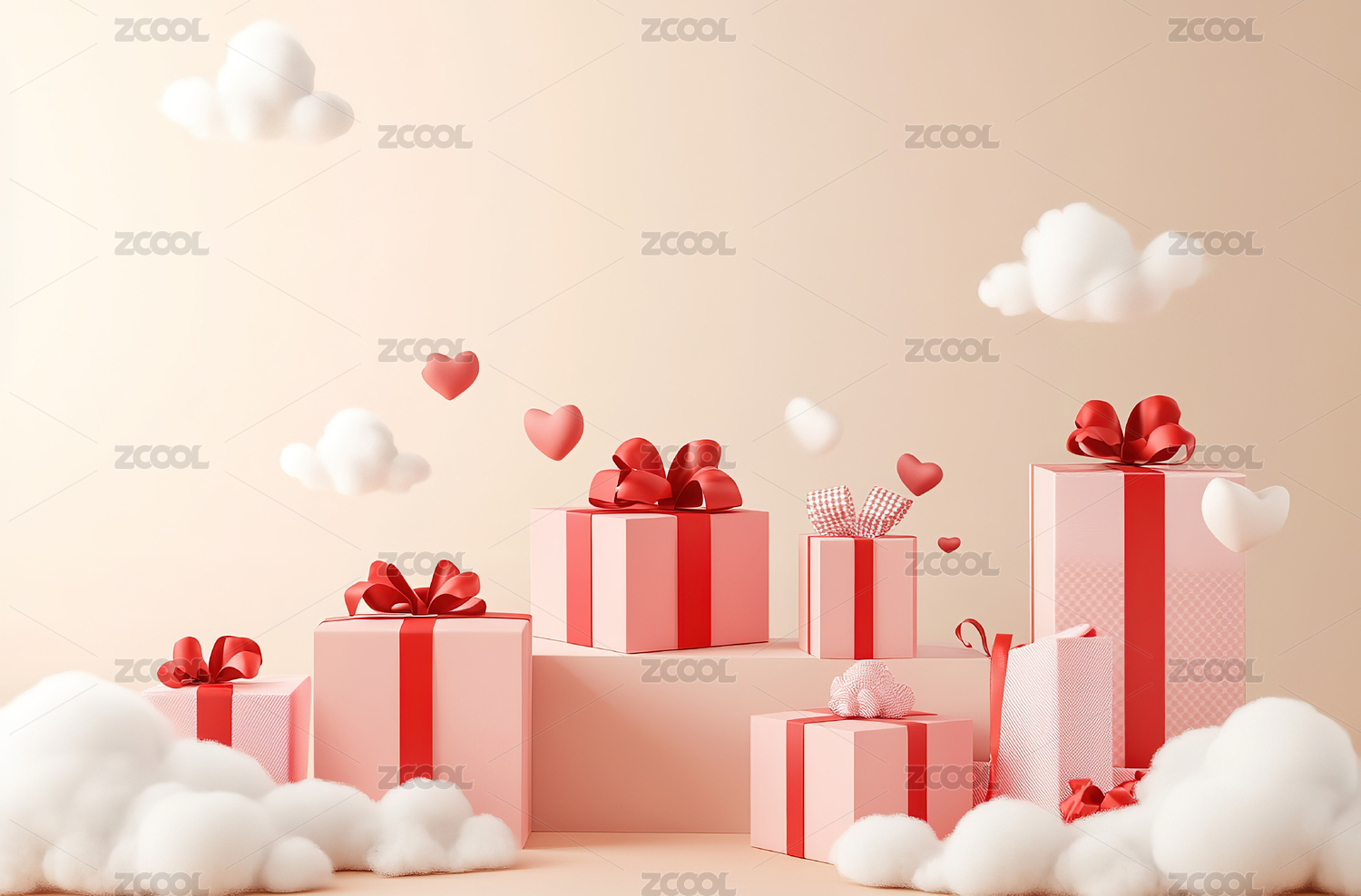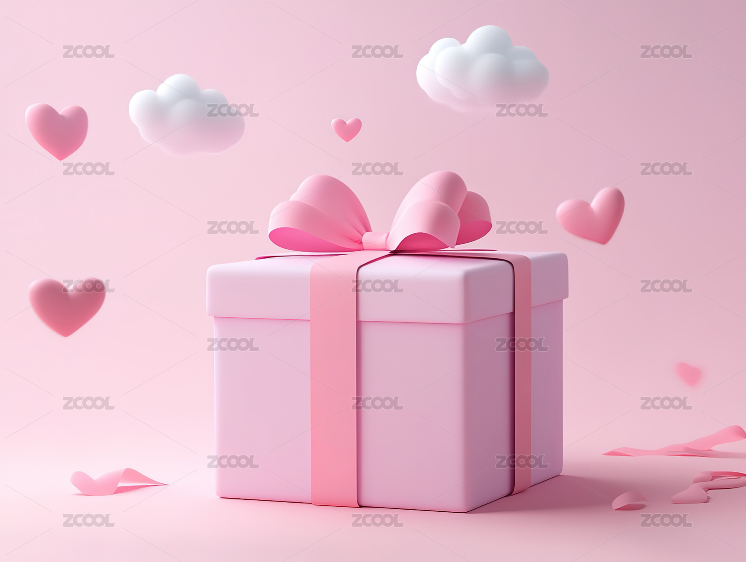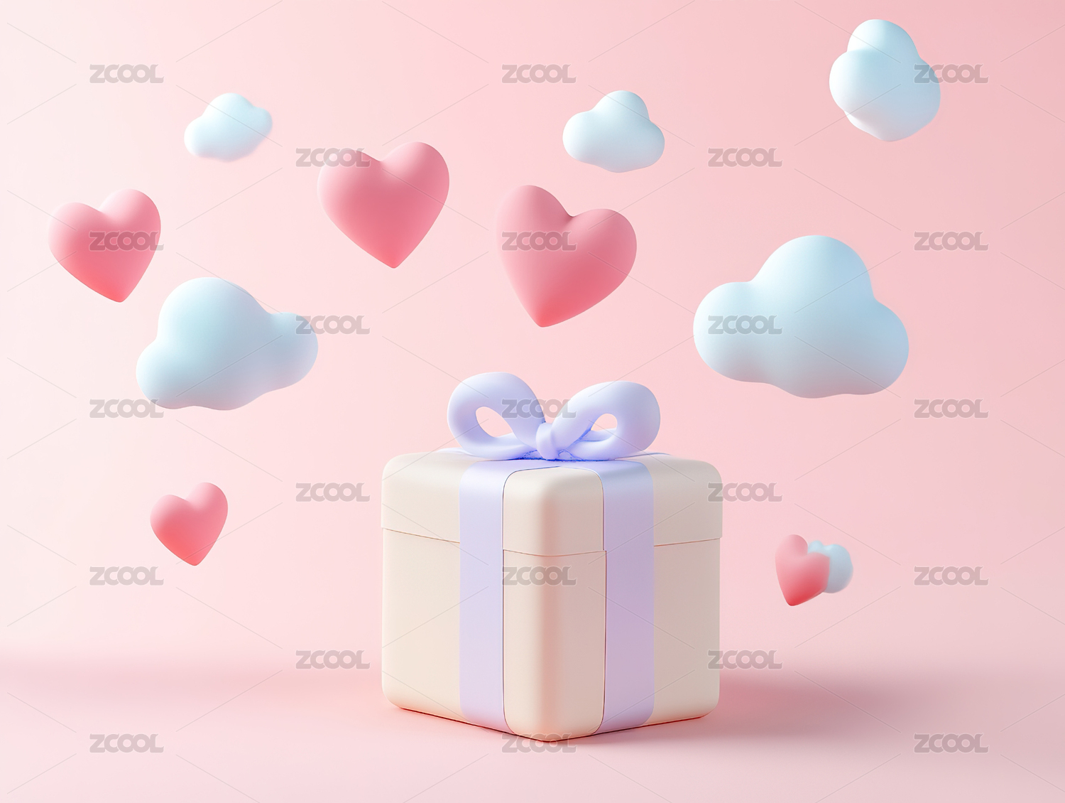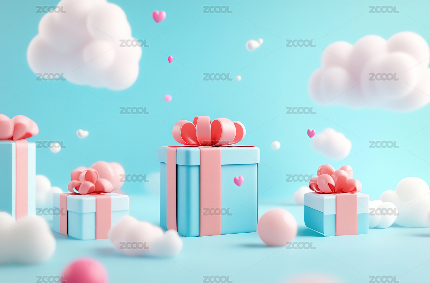 七夕情人节爱心气球浪漫礼物3D插画背景
