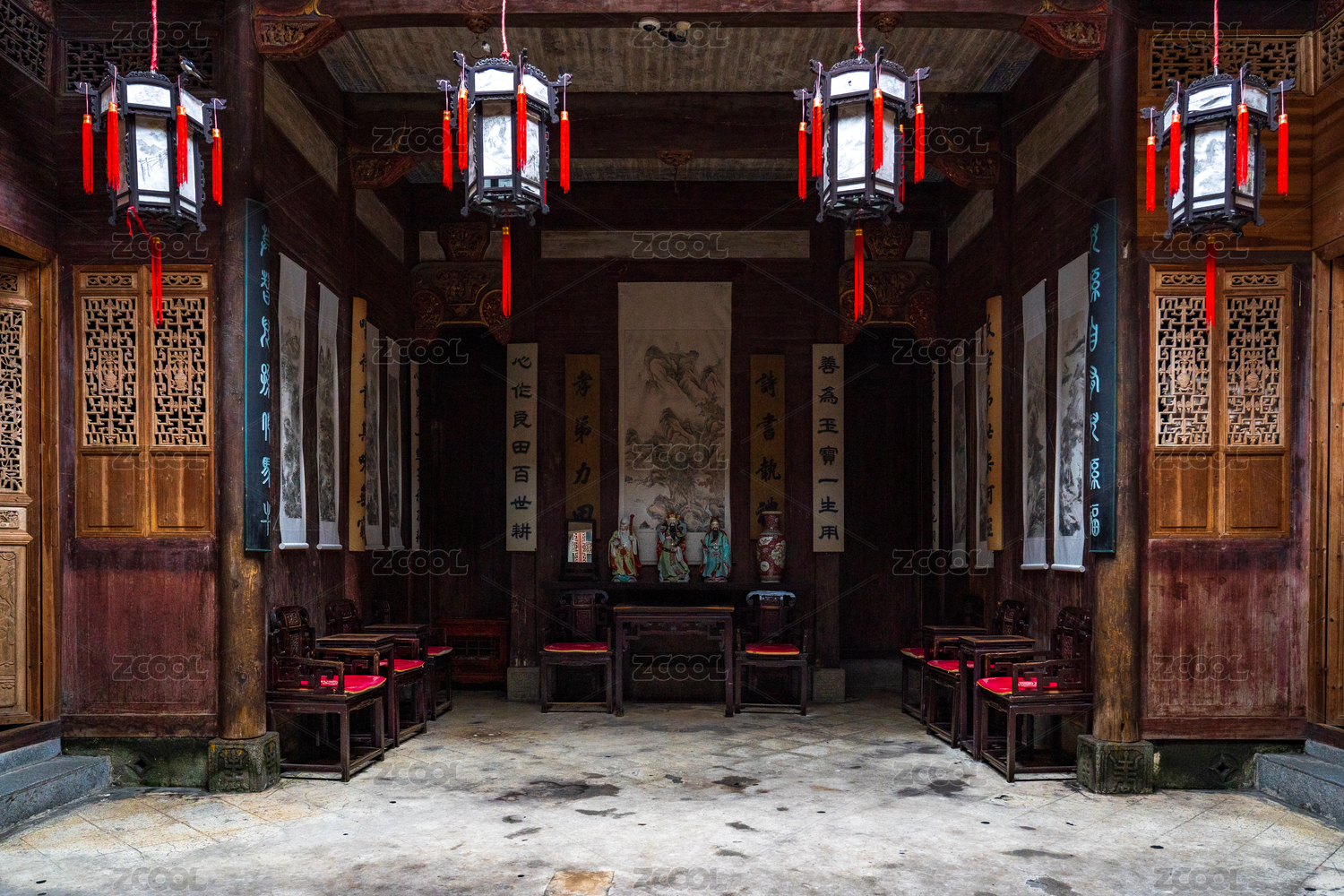 中式传统古建筑室内玄关庭院