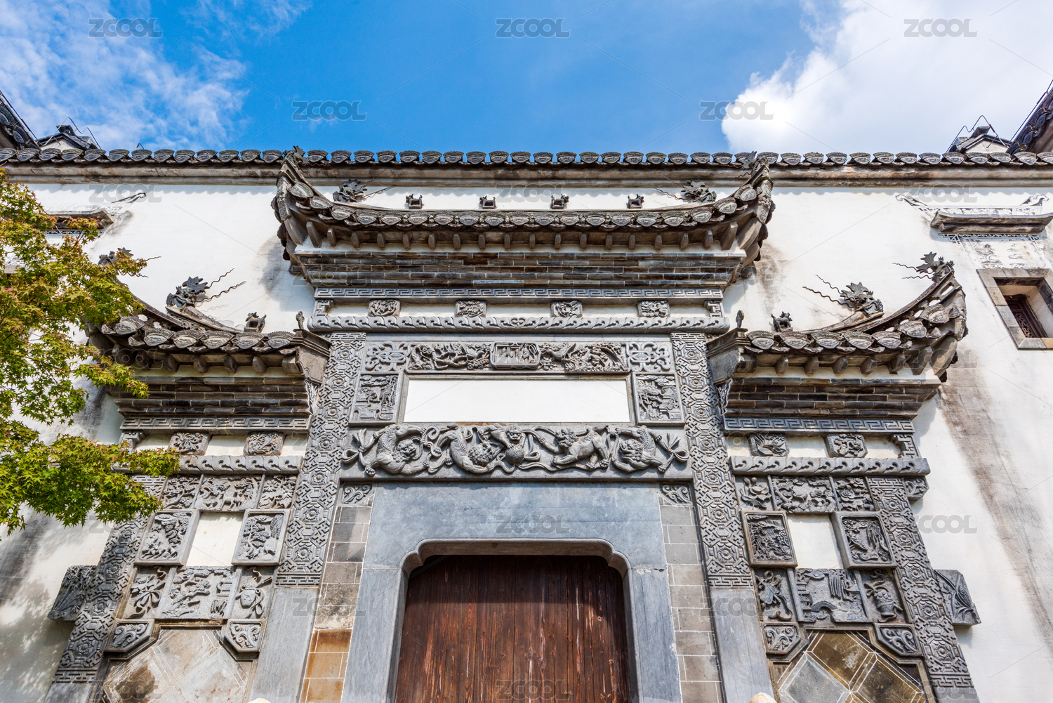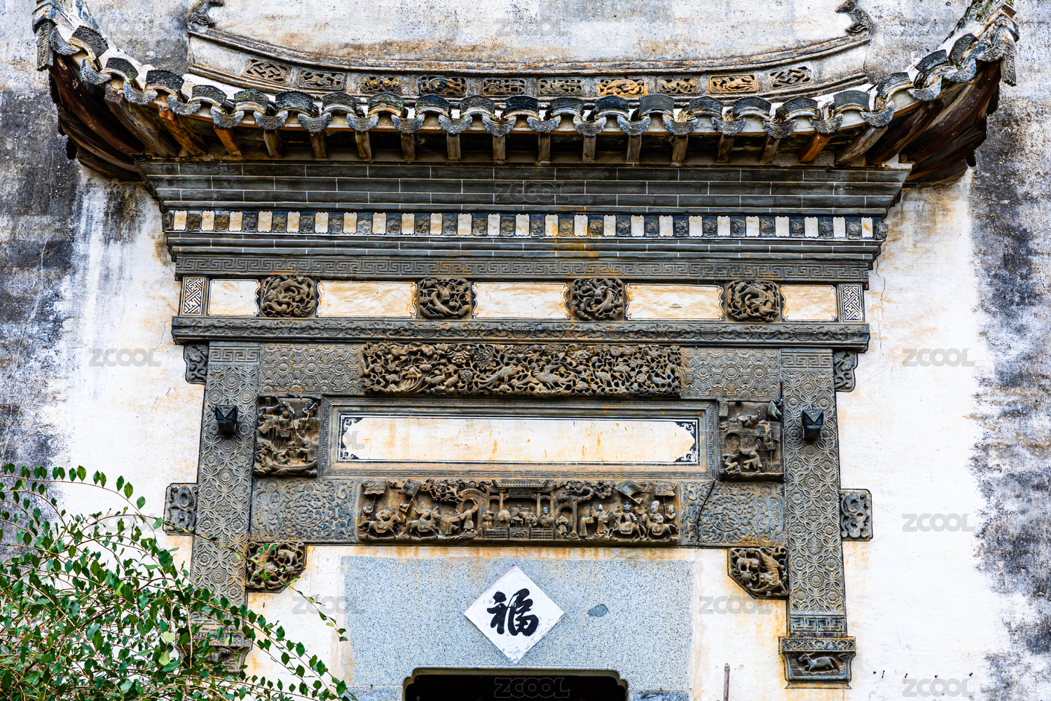 安徽省黟县西递古村徽派建筑砖雕门头门罩
