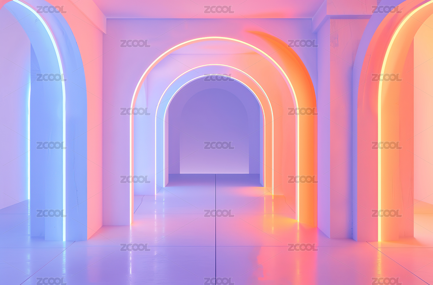 建筑,AI数字艺术,走廊,背景,拱门,室内,宗教,现代,照亮,建筑外部