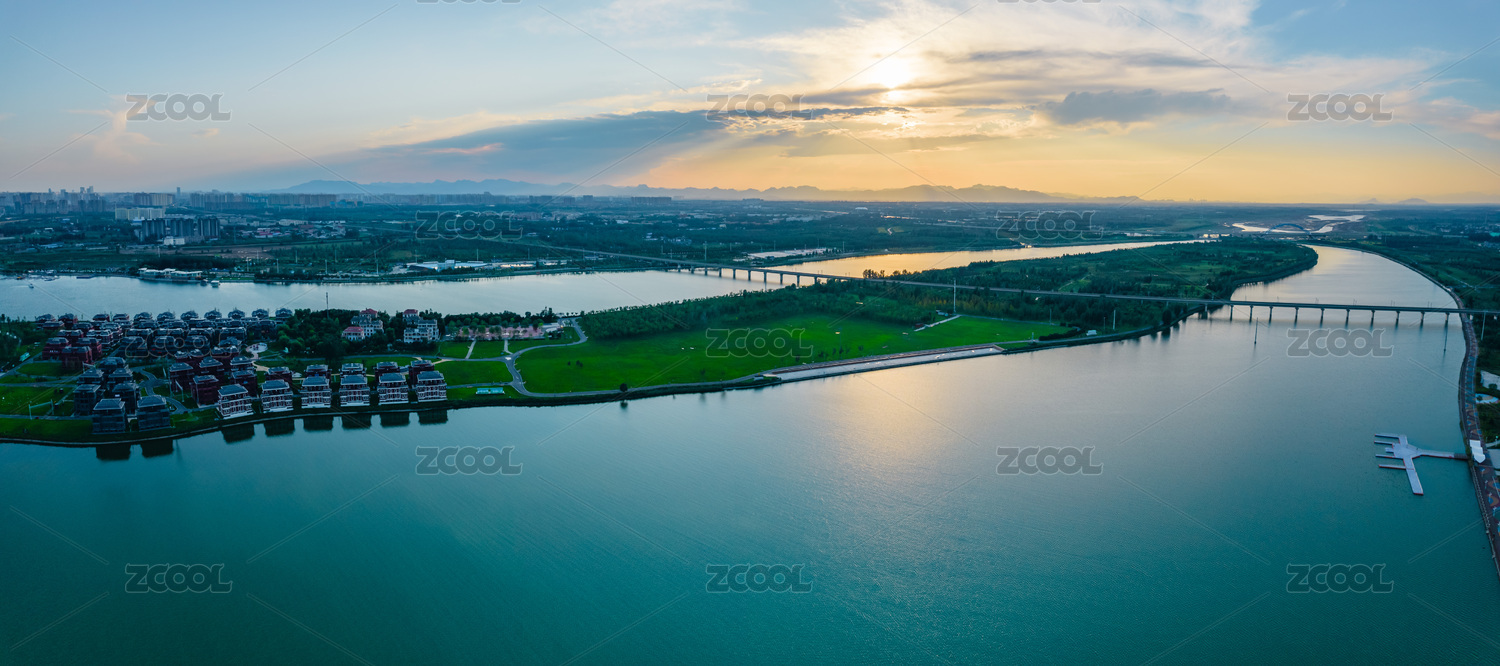 杭州西湖区钱塘江双浦五丰岛清晨风光