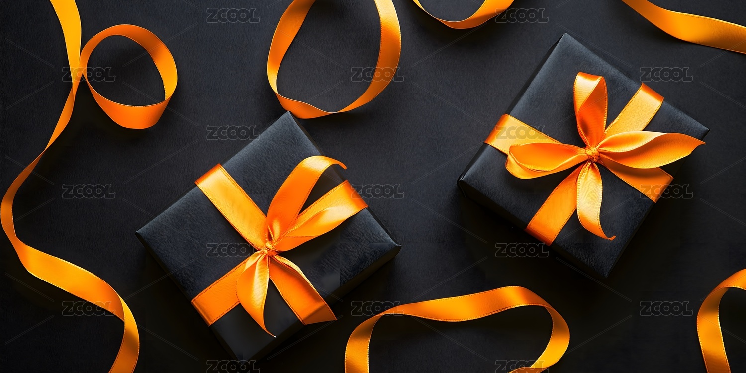 黑色礼品盒橙色丝带装饰