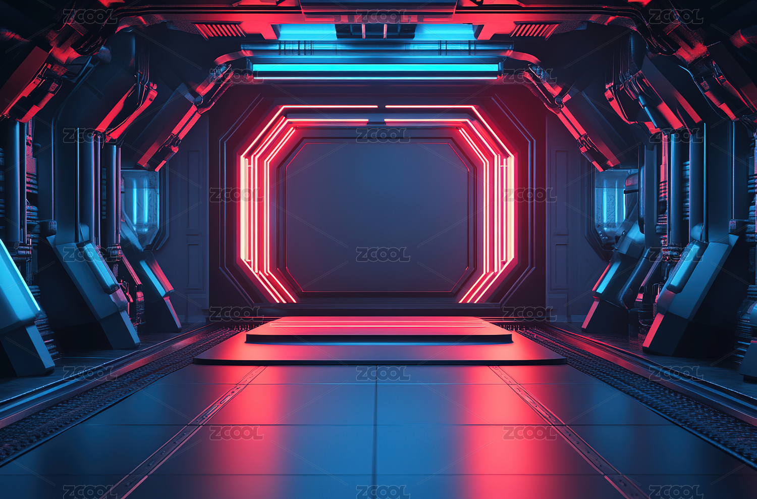 未来感走廊圆形平台