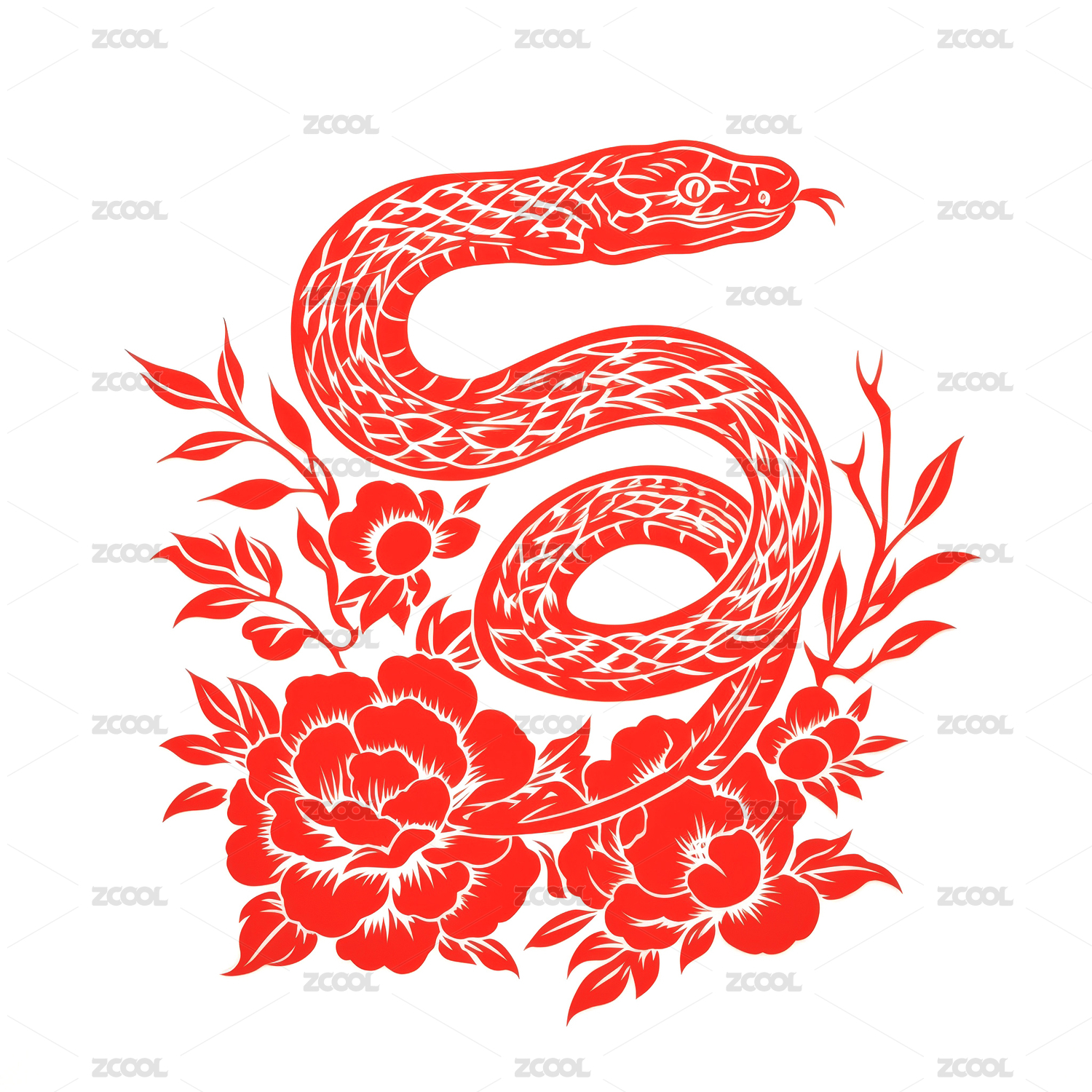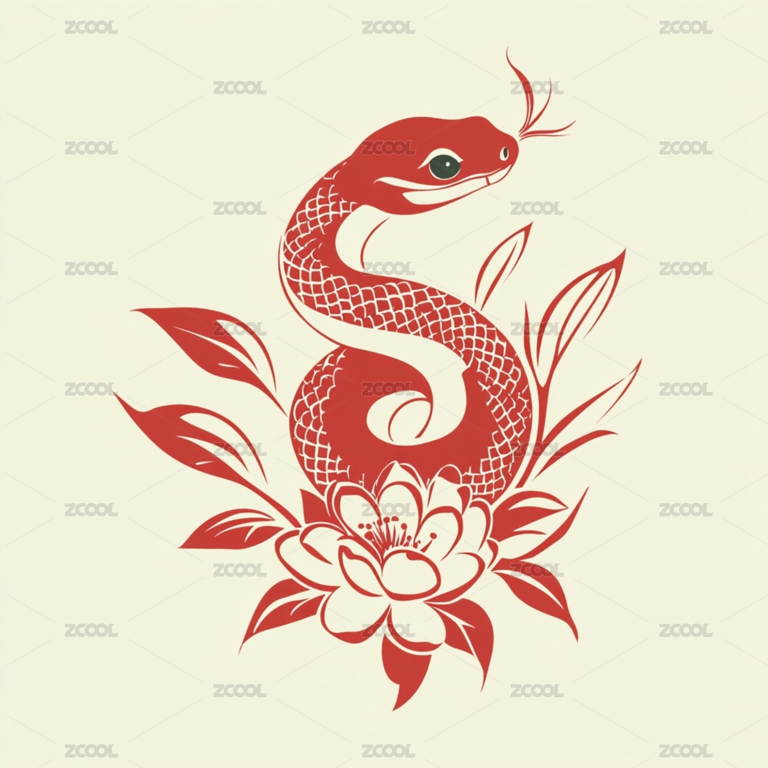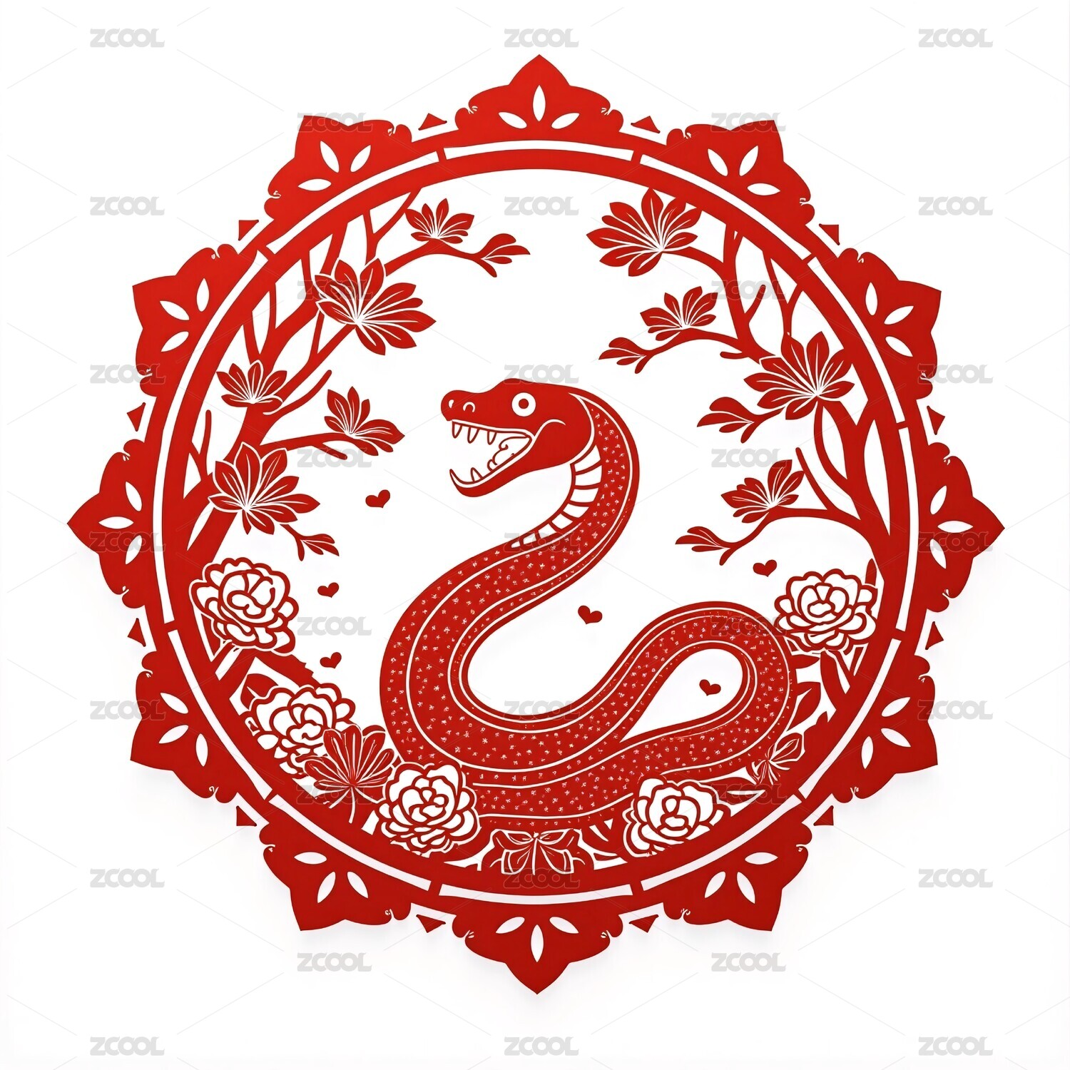 蛇年主题插画艺术剪纸图案logo徽章标志