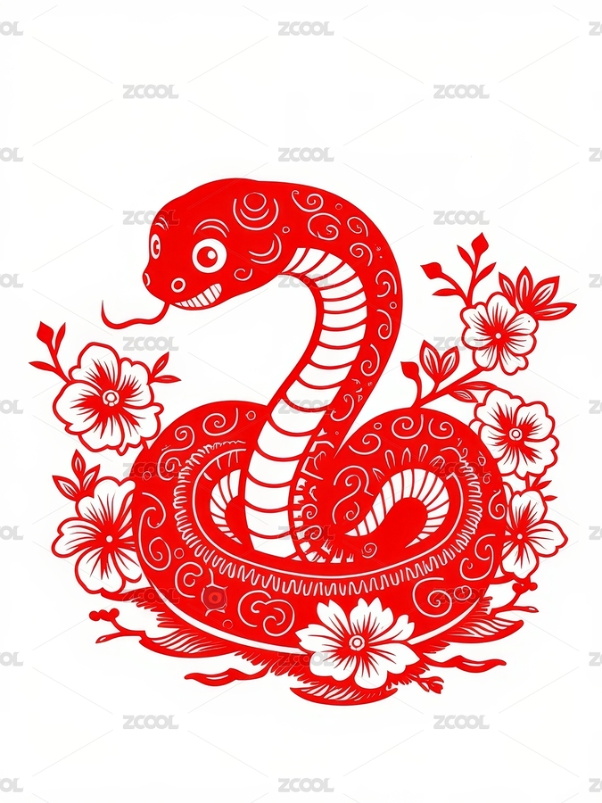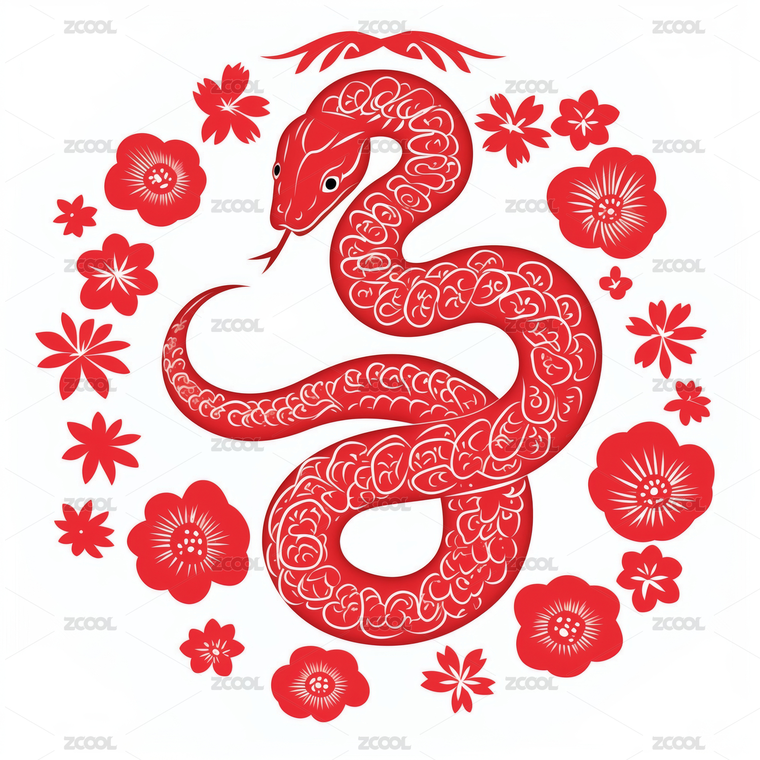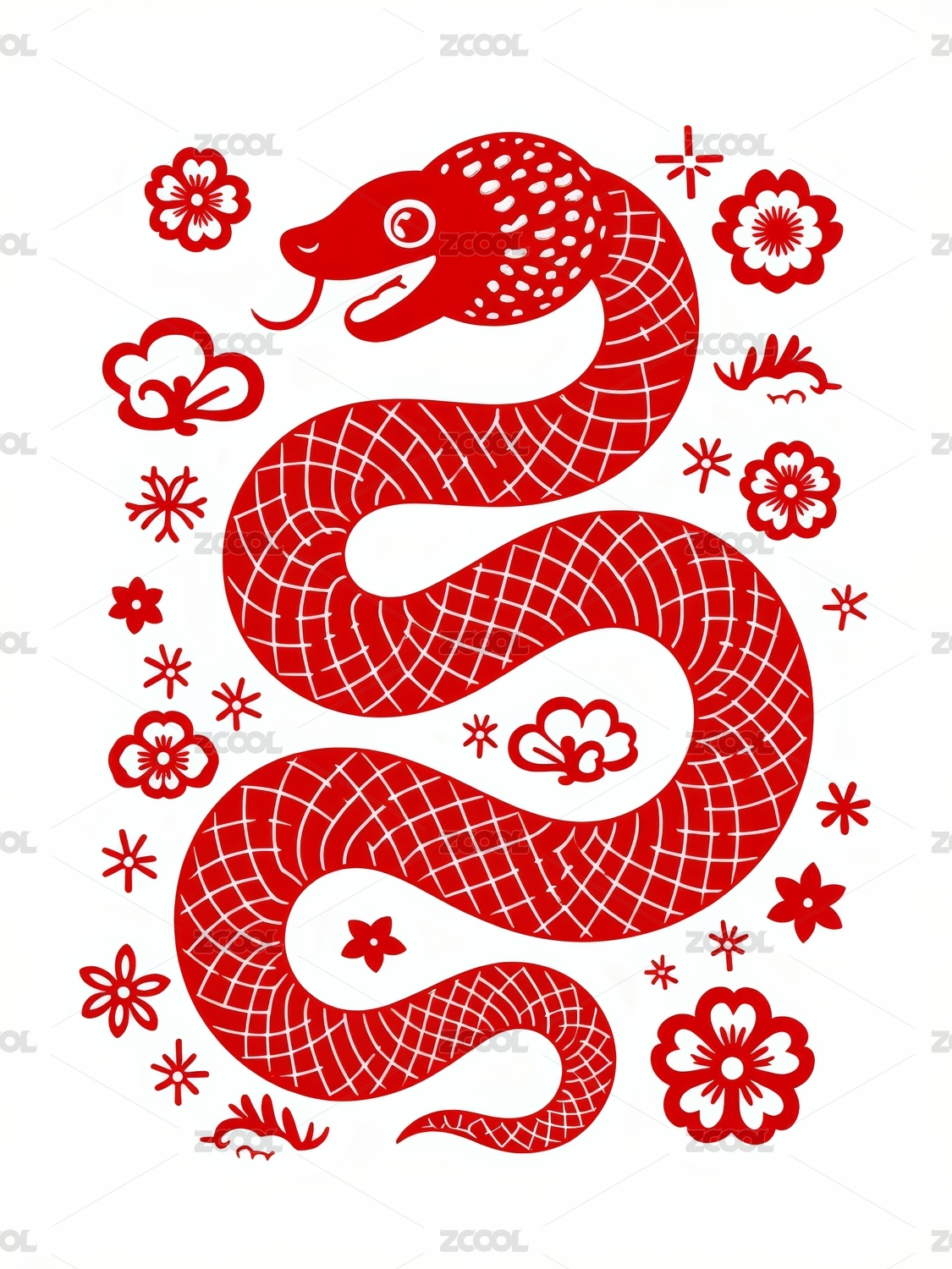 蛇年主题插画艺术剪纸图案logo徽章标志