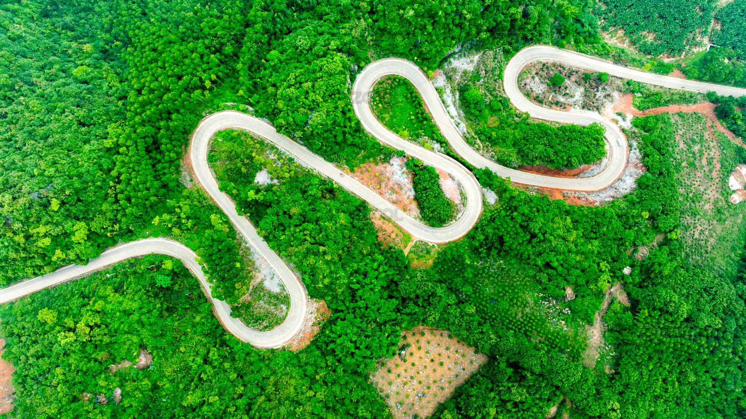 航拍,森林,环山,公路,线路,温带,松树林,森林公园,原始森林,针叶林
