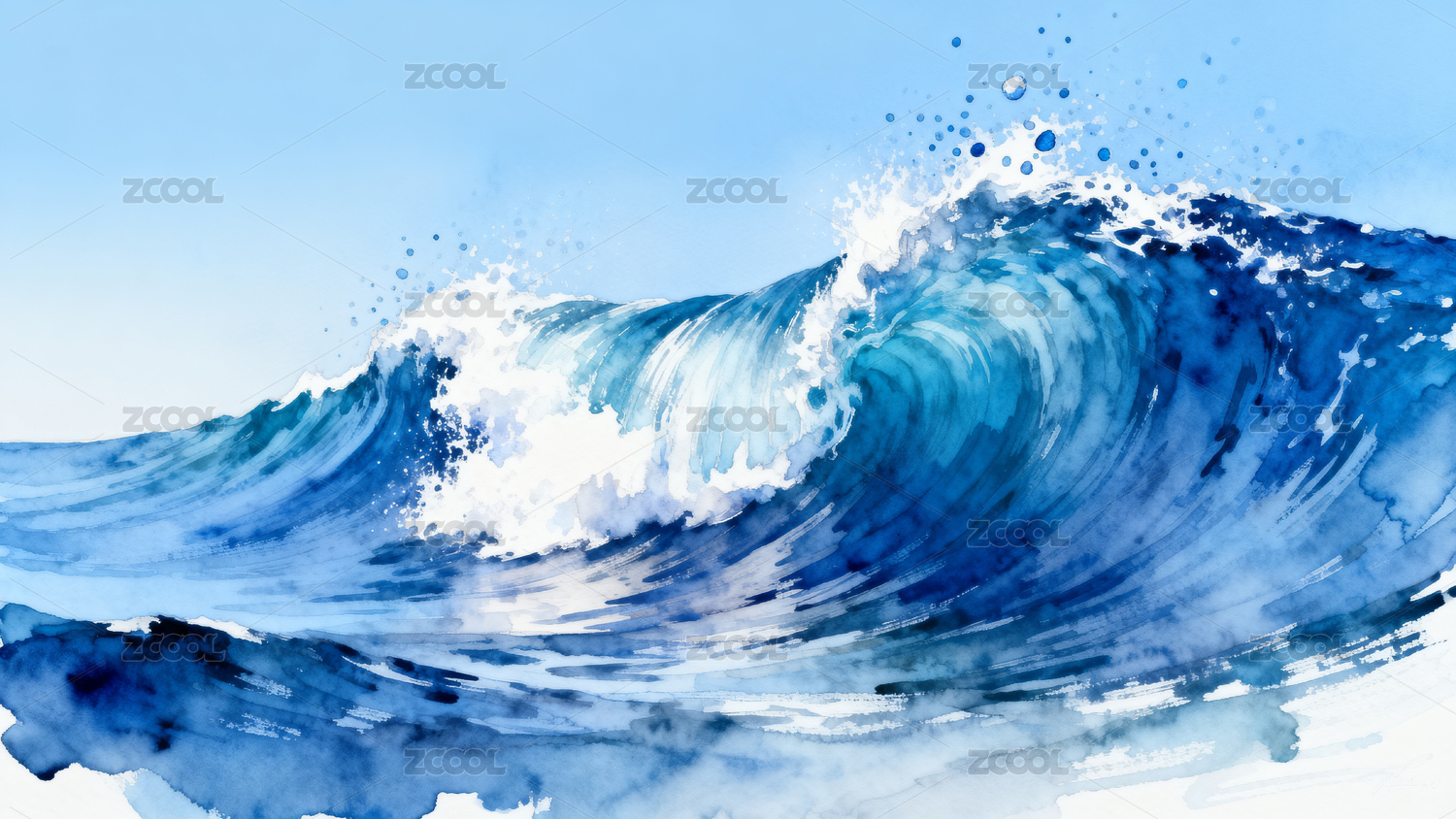 海洋,自然,白昼,户外,波浪,背景,风景,蓝色,特写,AI数字艺术