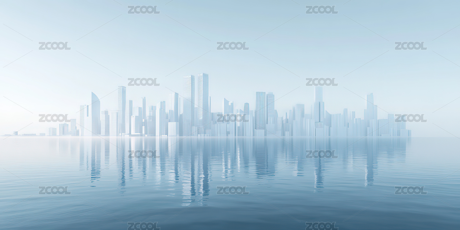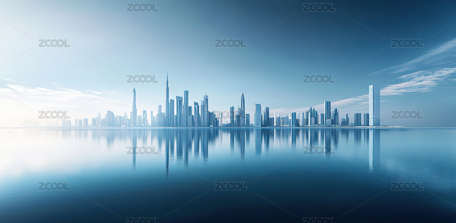 城市天际线倒影