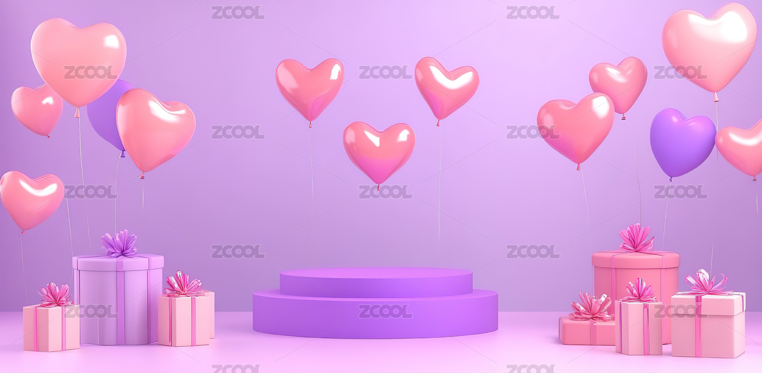 粉色气球礼盒爱心棒棒糖