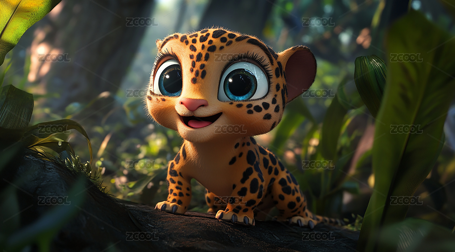 卡通,可爱,动物,丛林,自然,野生动物,背景,绘画,森林,图像