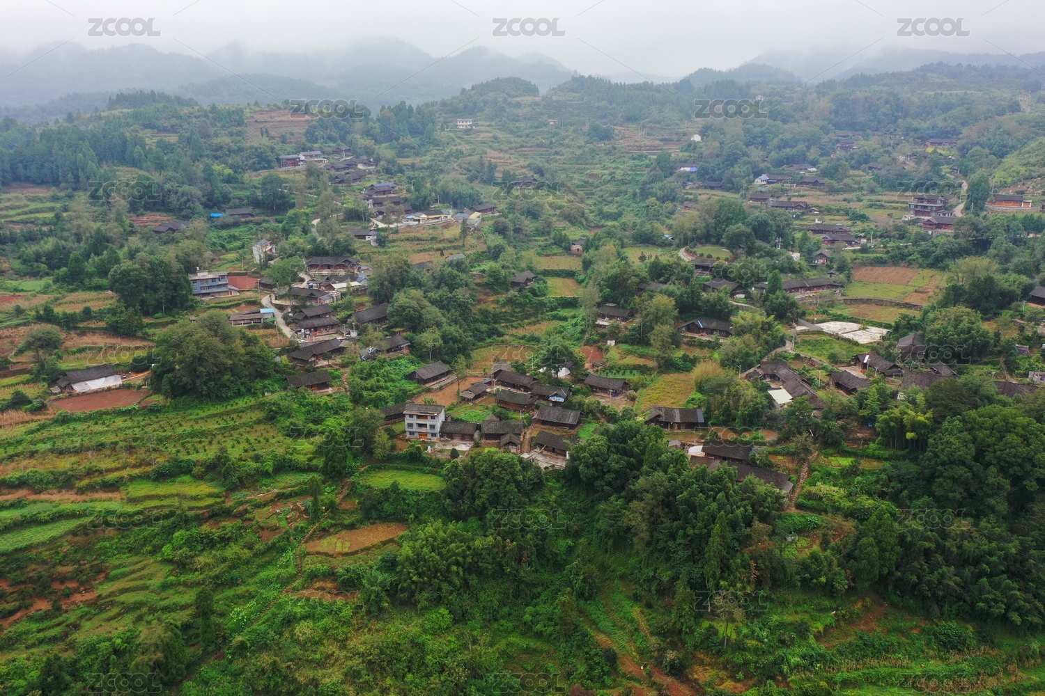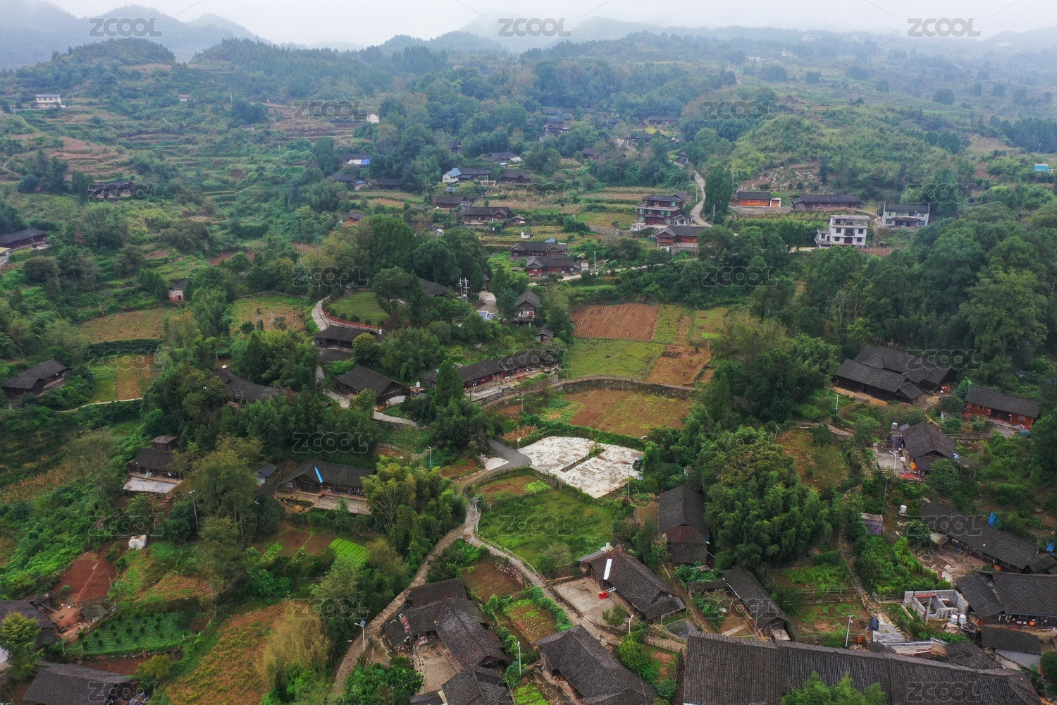 航拍湖南湘西山中的苗寨