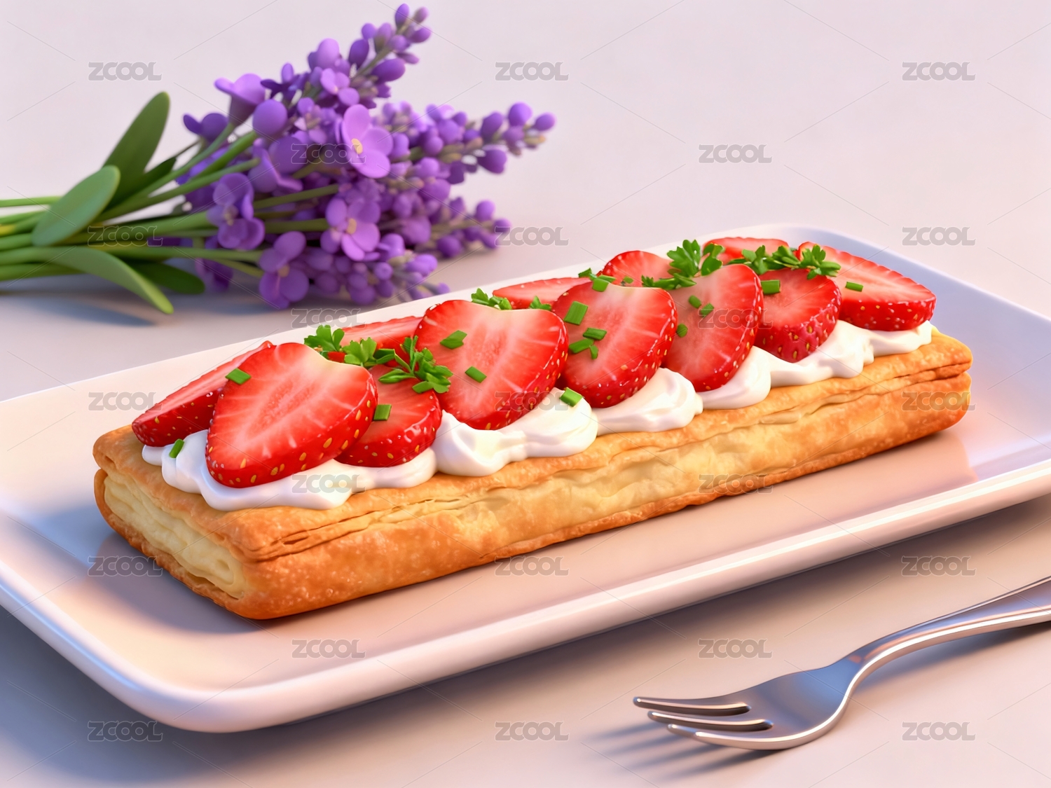 水果,蛋糕,草莓,樱桃,芒果,白色,盘子