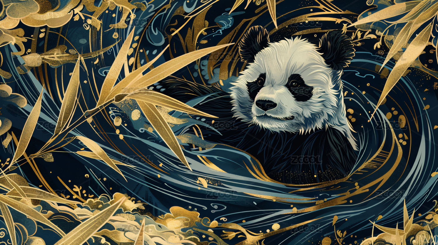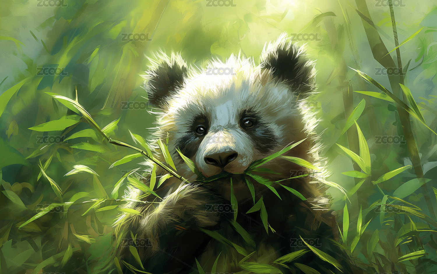 一个大熊猫在竹林中的插画