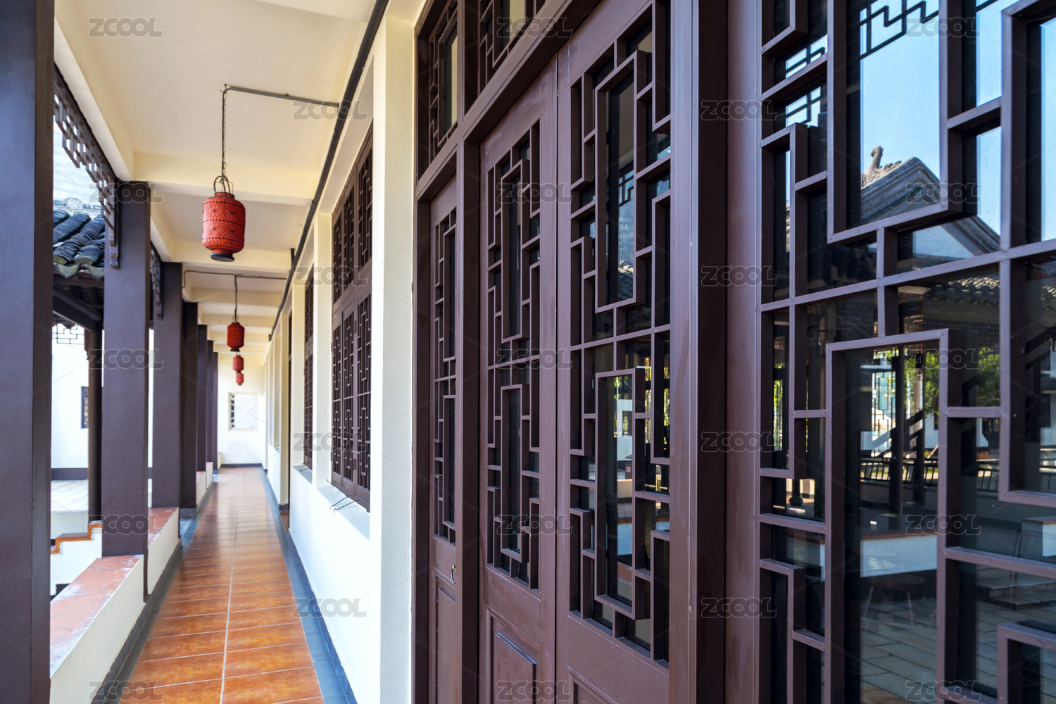 福建龙岩长汀县卧龙书院古巷深处的红灯笼