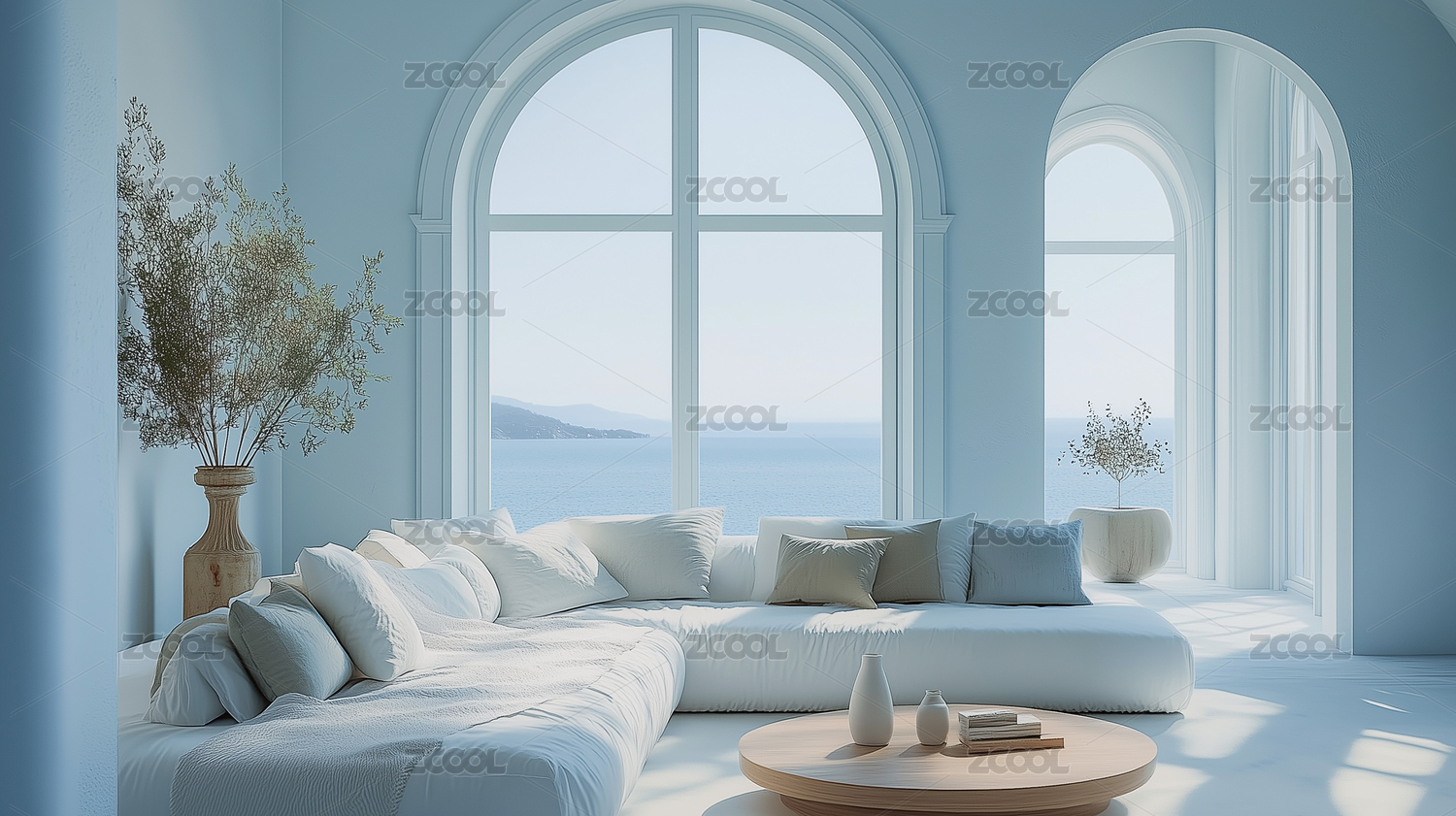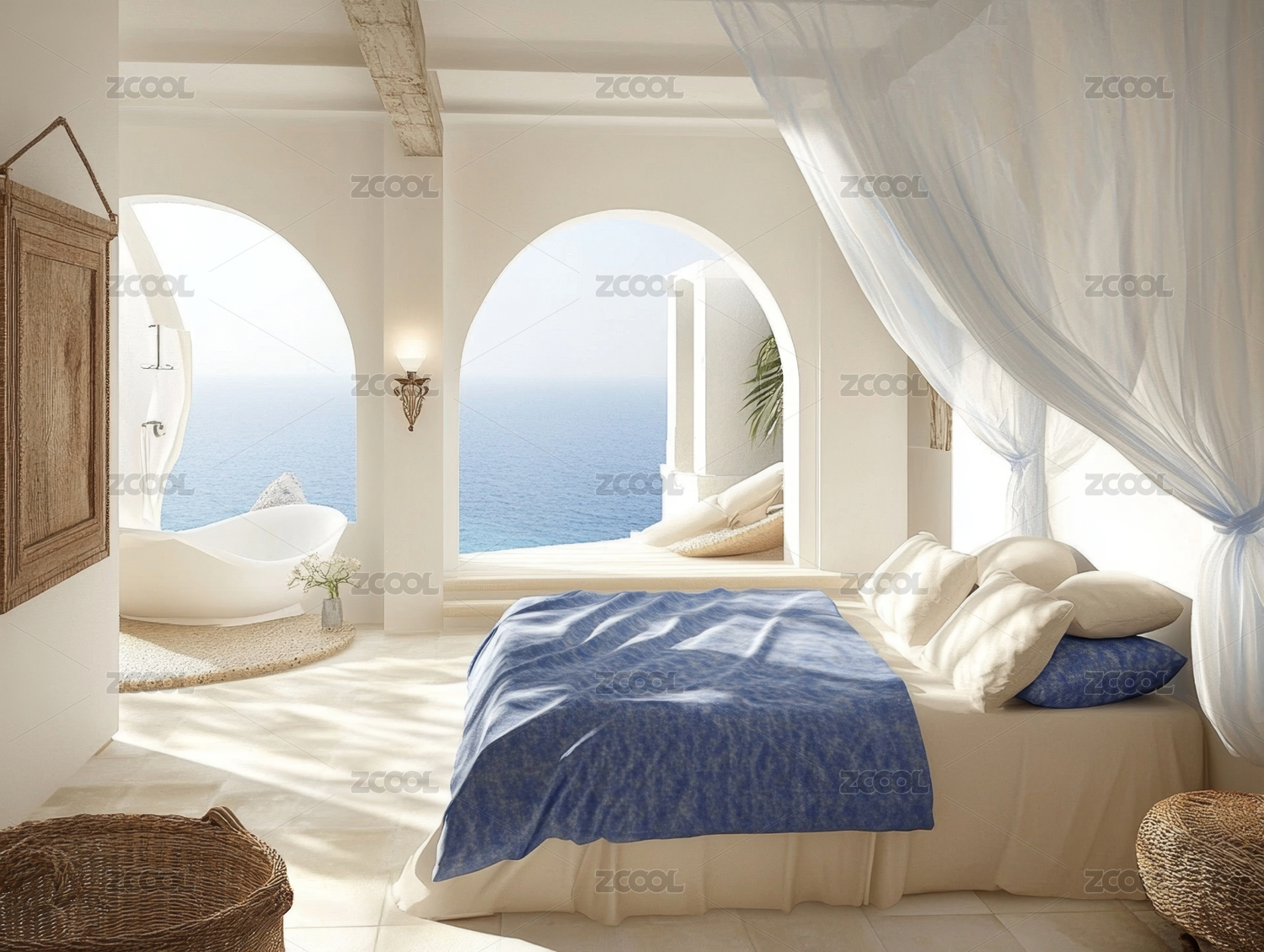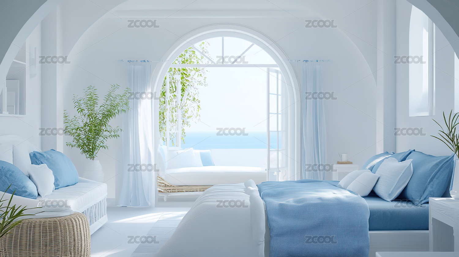 海边白色卧室景观