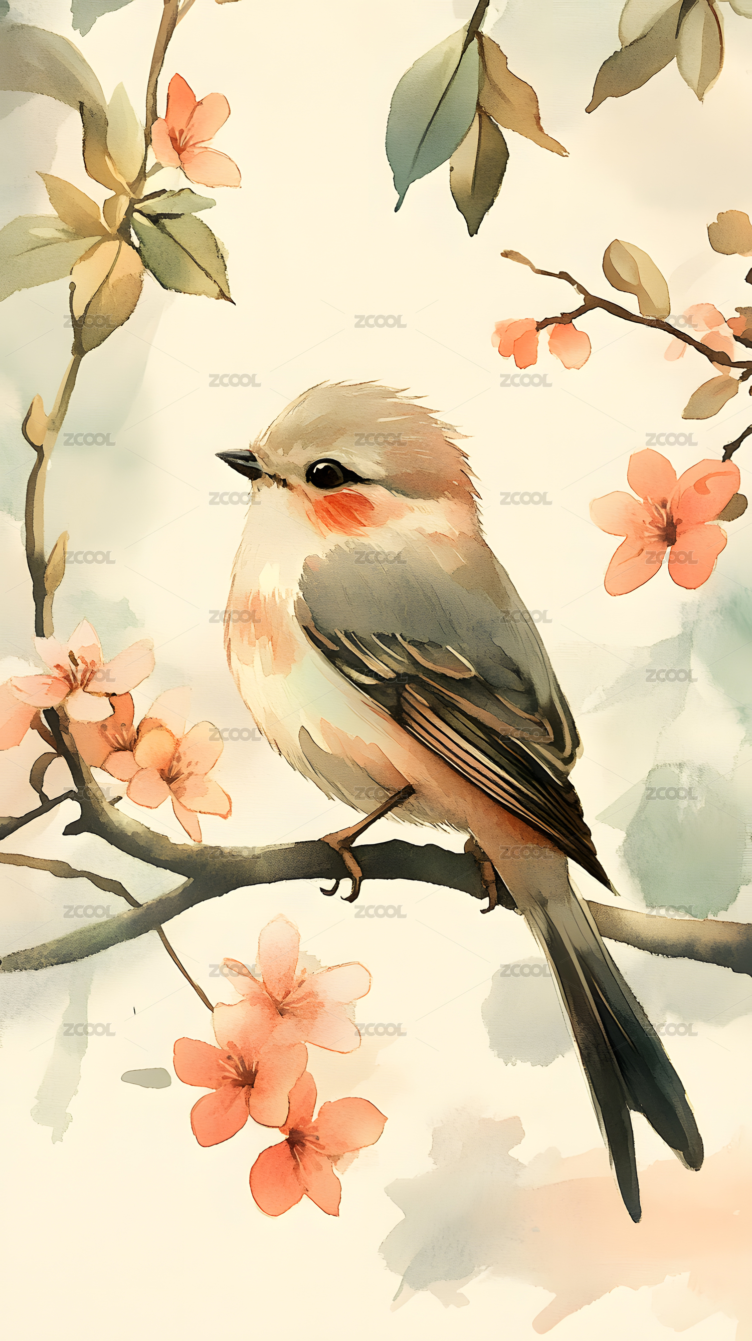 绘画,艺术,清新,淡雅,水墨,自然,国风,植物,传统,鸟