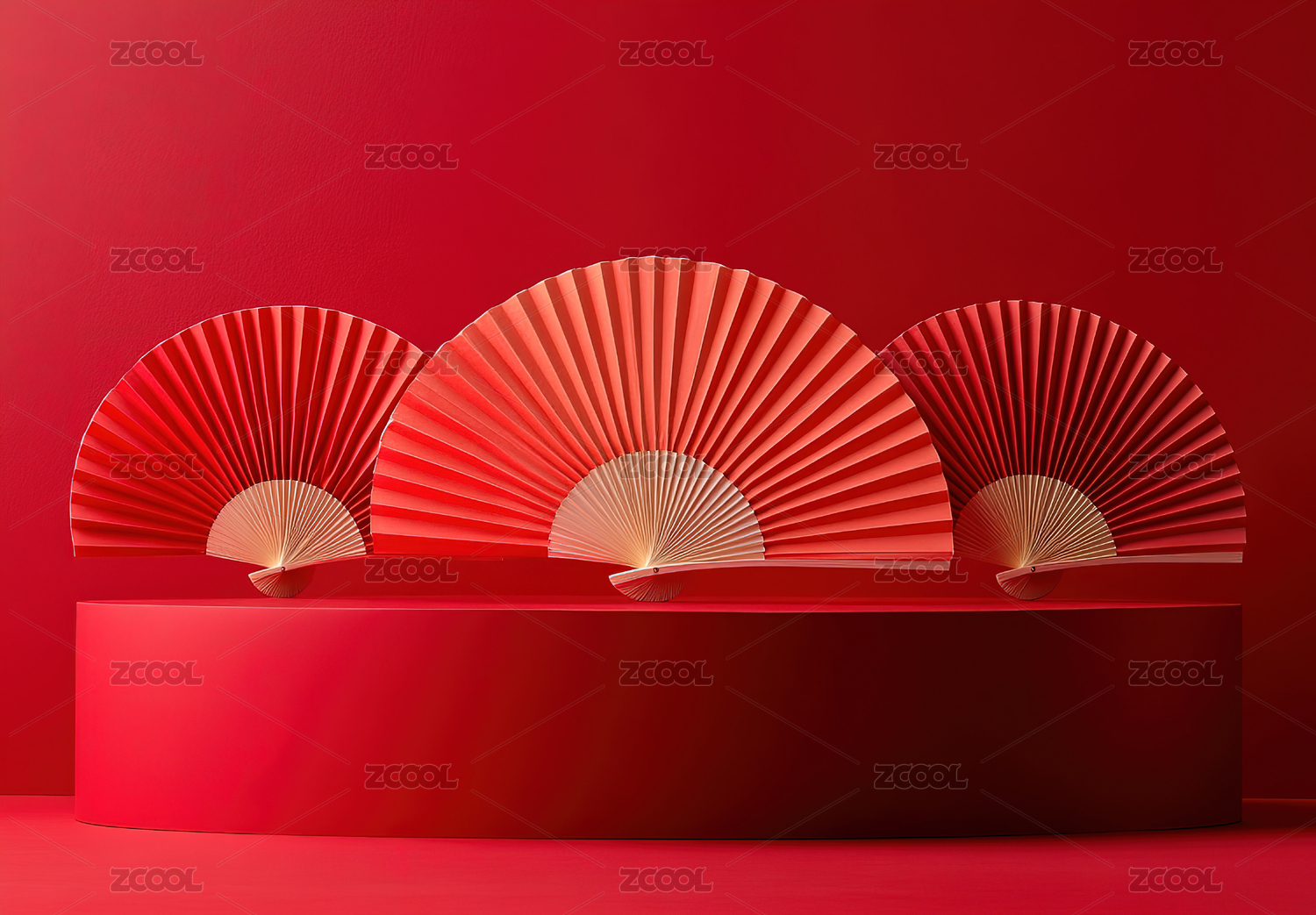 红色扇子环绕的展台
