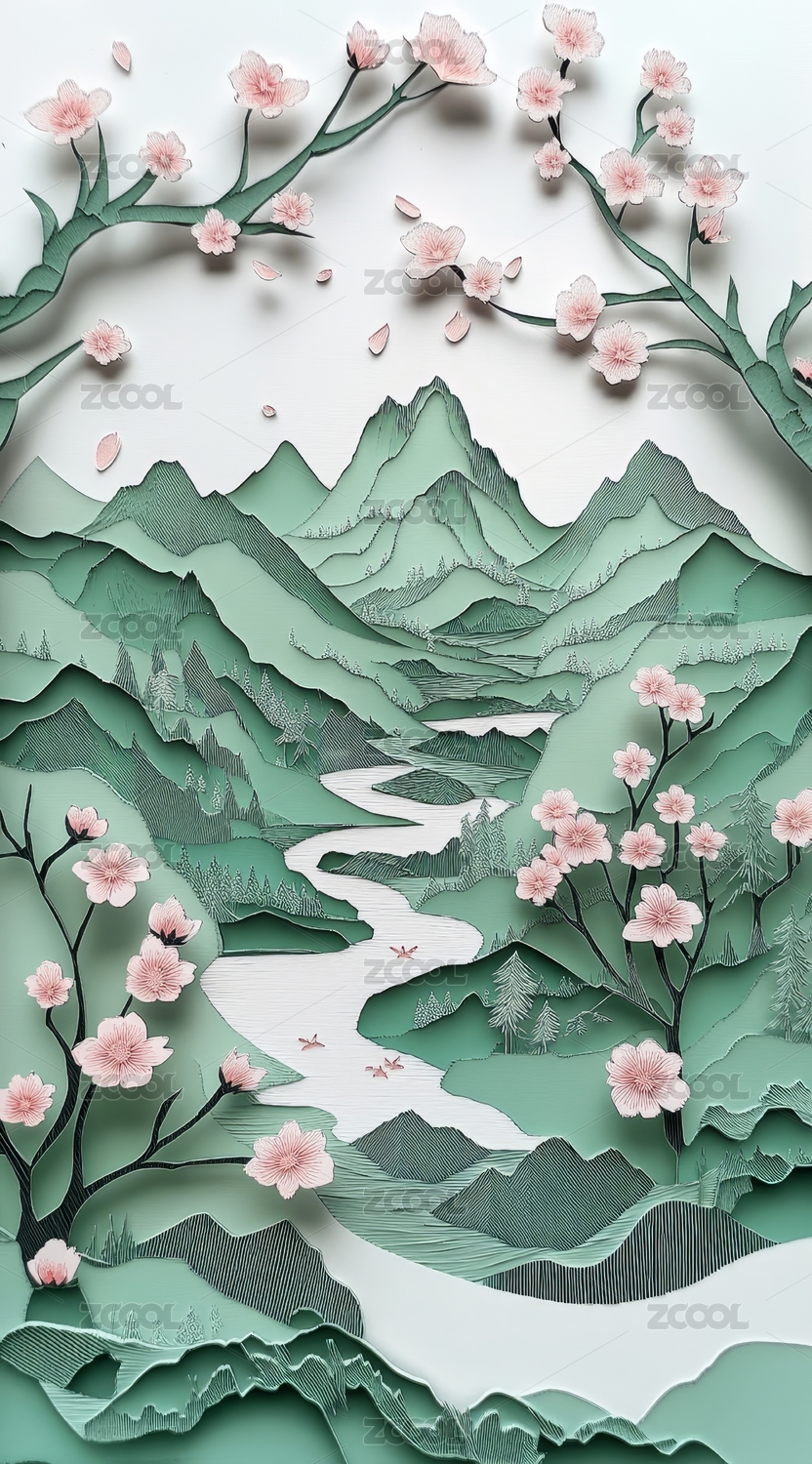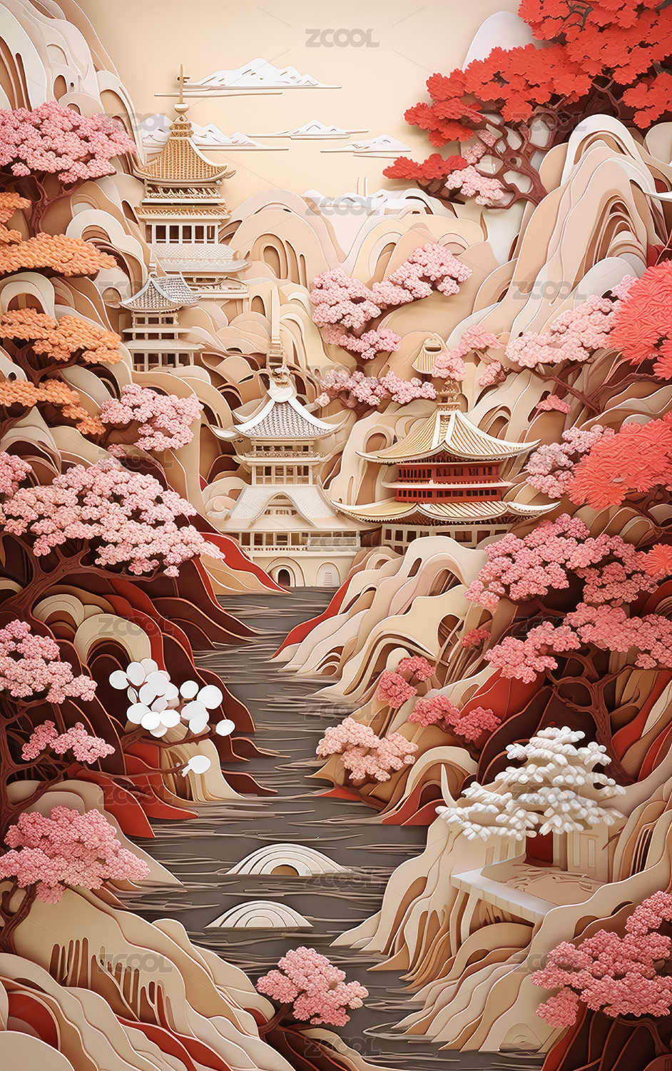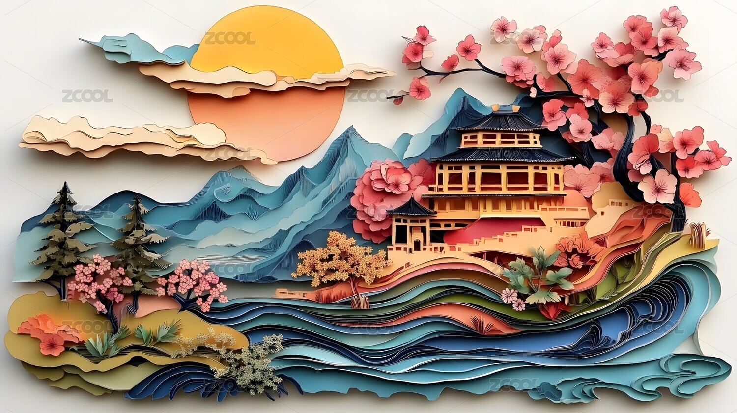 插画,风景,自然,创意,日落,艺术,立体,三维,静谧,淡雅