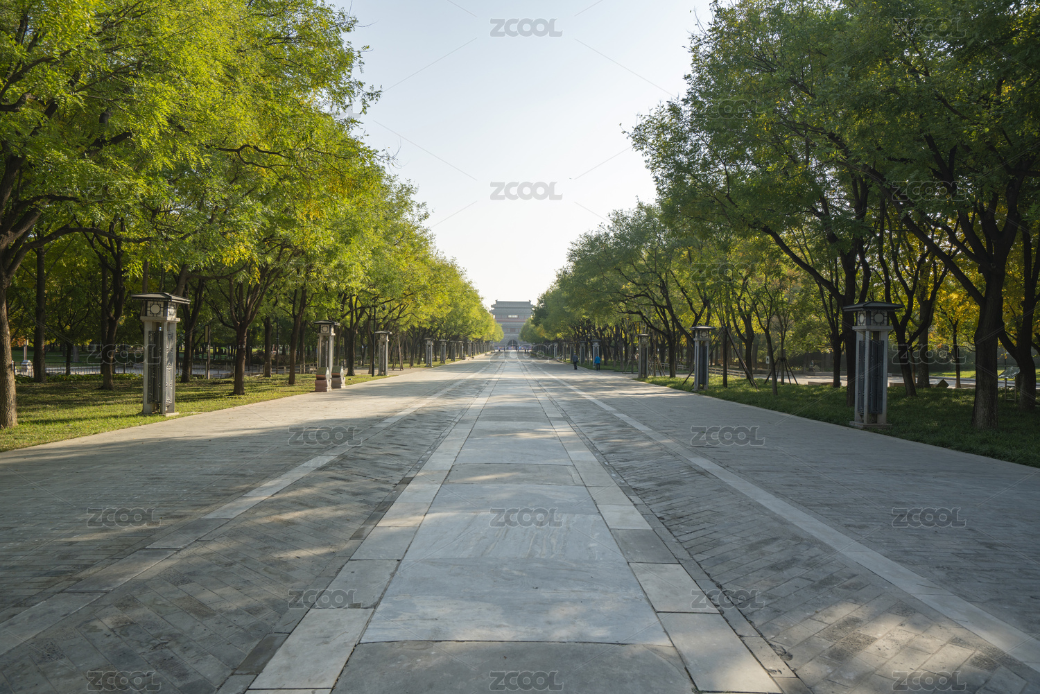 蓝天白云下的中国北京明十三陵长陵神道(神路)