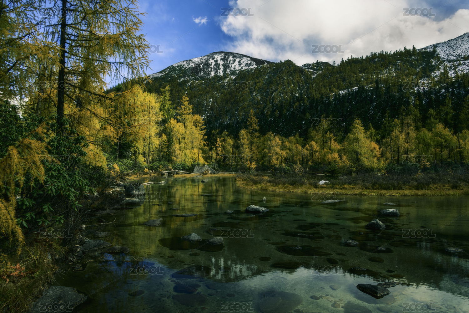 九寨沟风景区芳草海秋季彩林山水自然风光