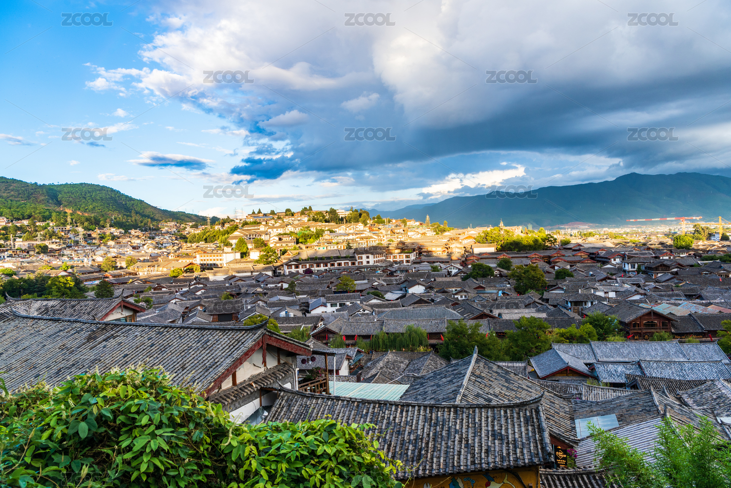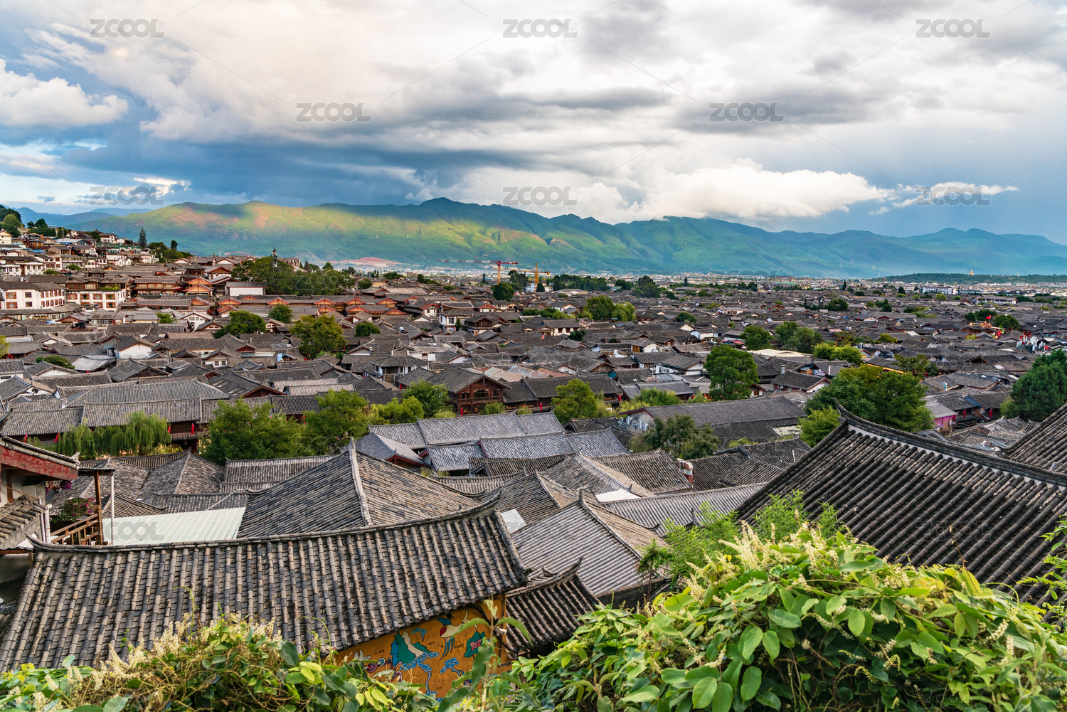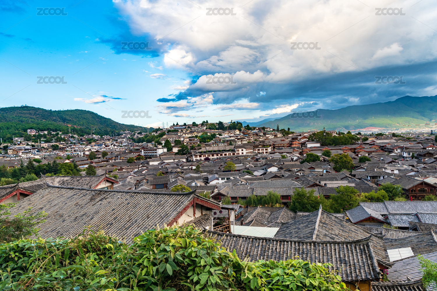 中国云南省丽江市丽江古城全景