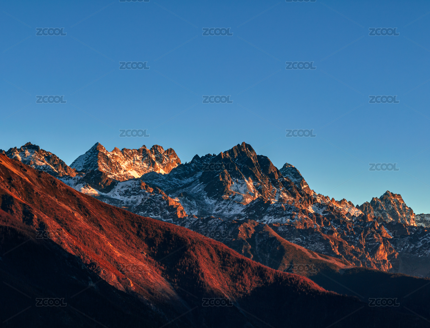 长焦拍摄中国西藏林芝雪山日照金山细节特写