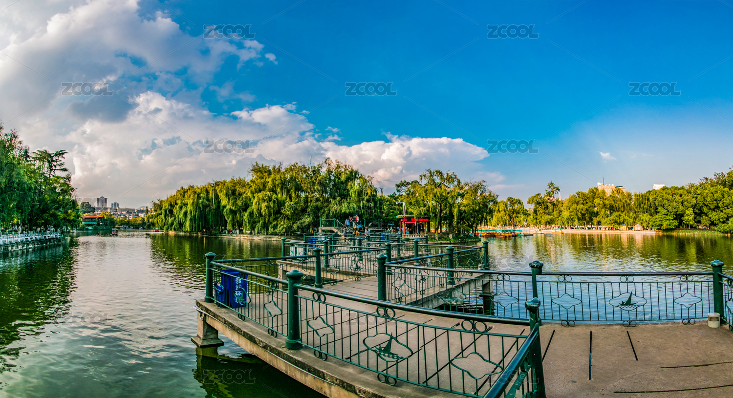 广西南宁市人民公园湖泊夕阳落日全景长图
