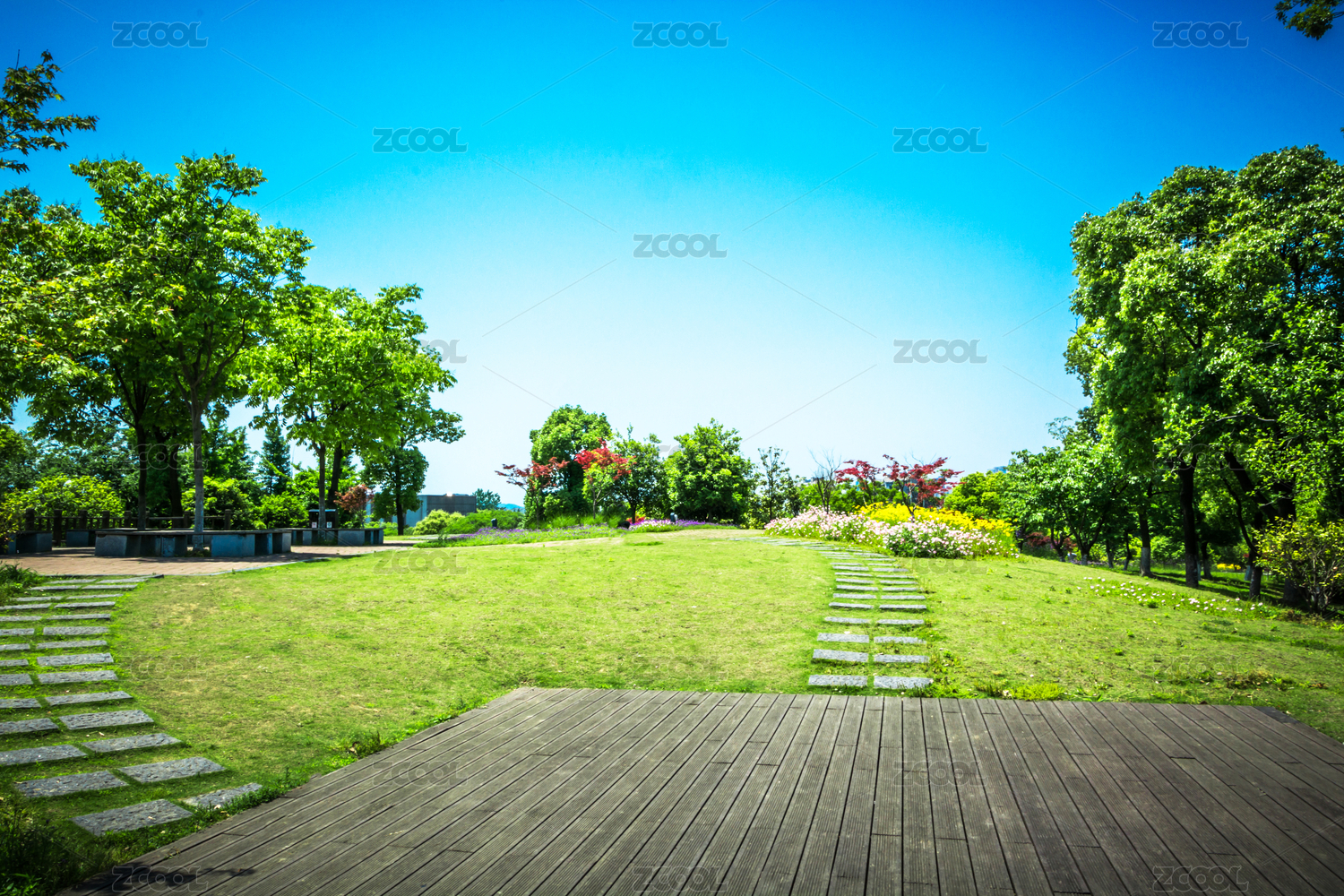中国哈尔滨秋季晴天太阳岛景区花园草地树林道路