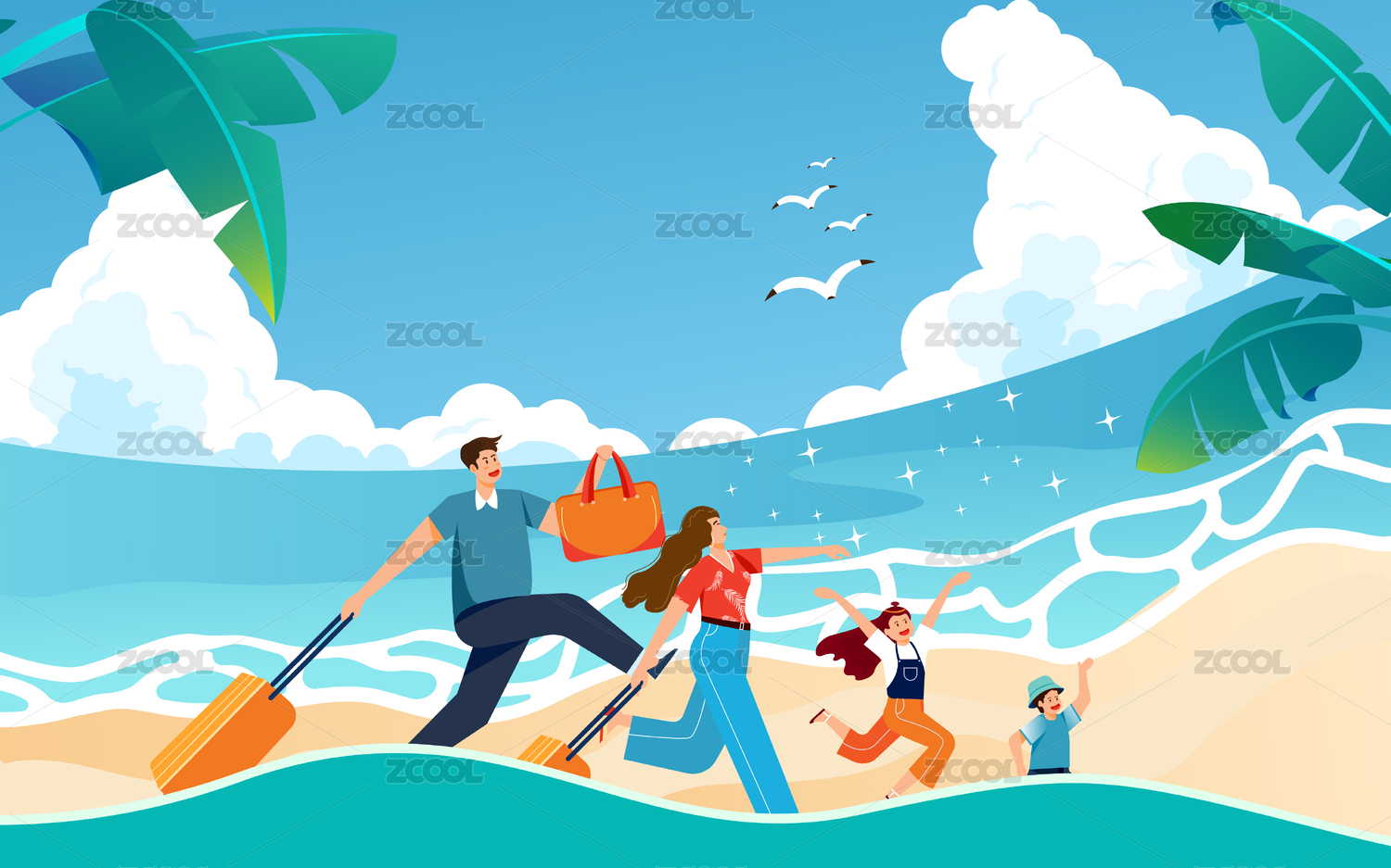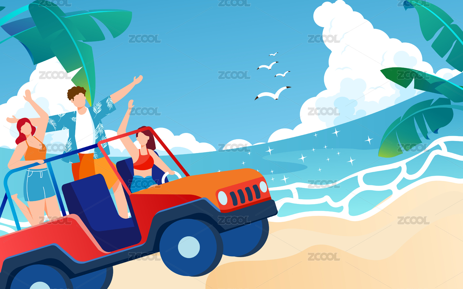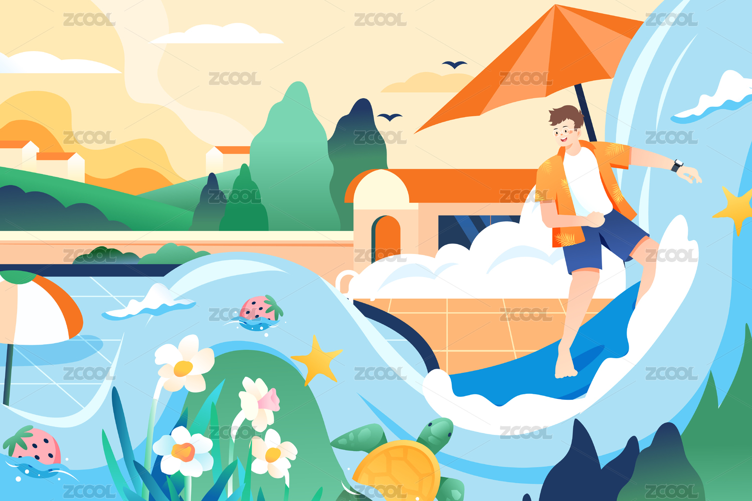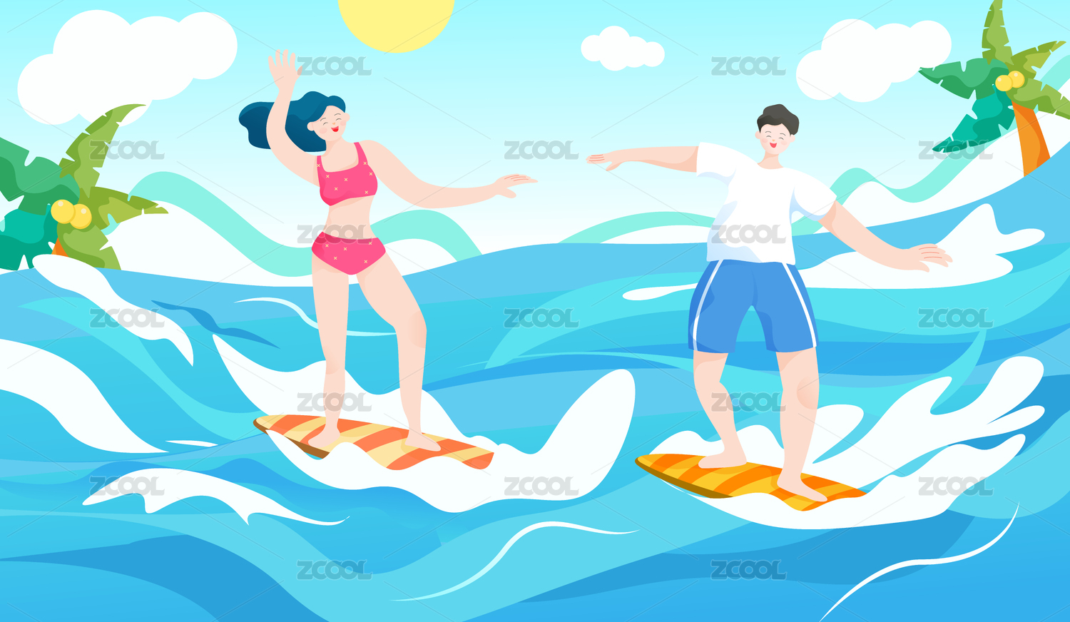 旅行,旅游,夏日,海边,海南,娱乐,冲浪,扁平,插画,人物