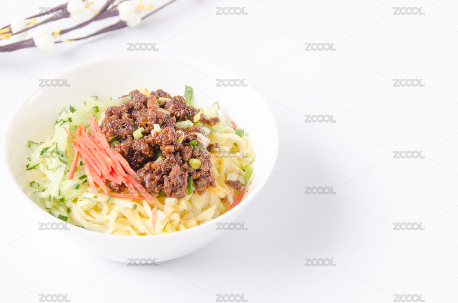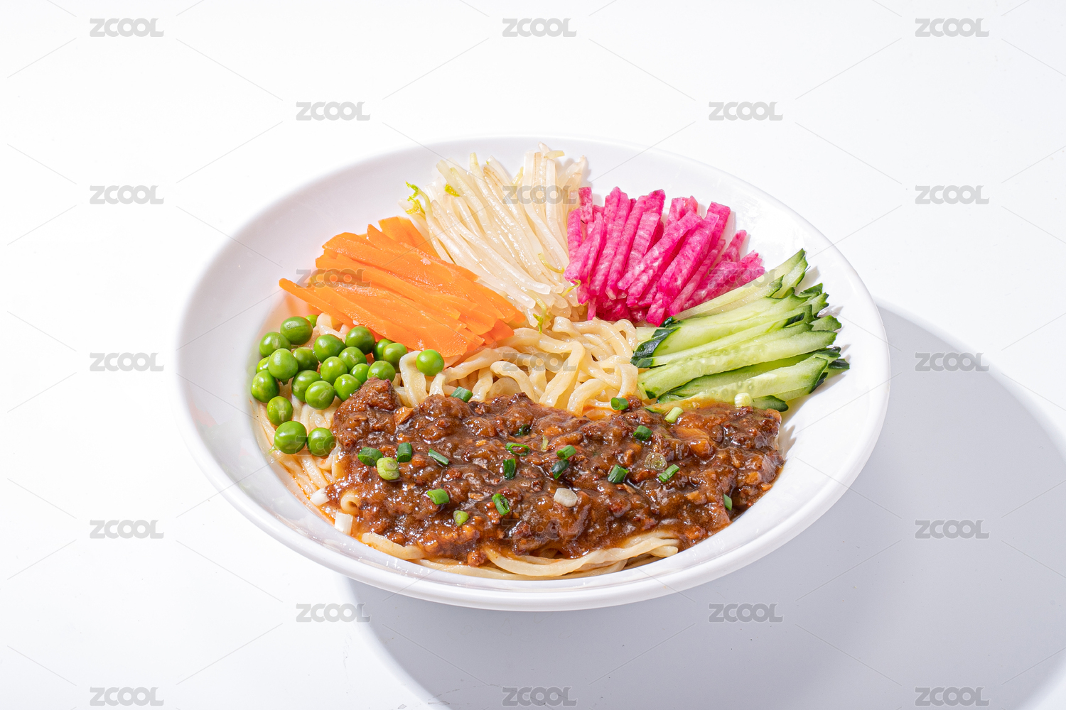 炸酱面,俯视,俯拍,斜拍,美食,中式美食,白底图,米线,食品,蔬菜
