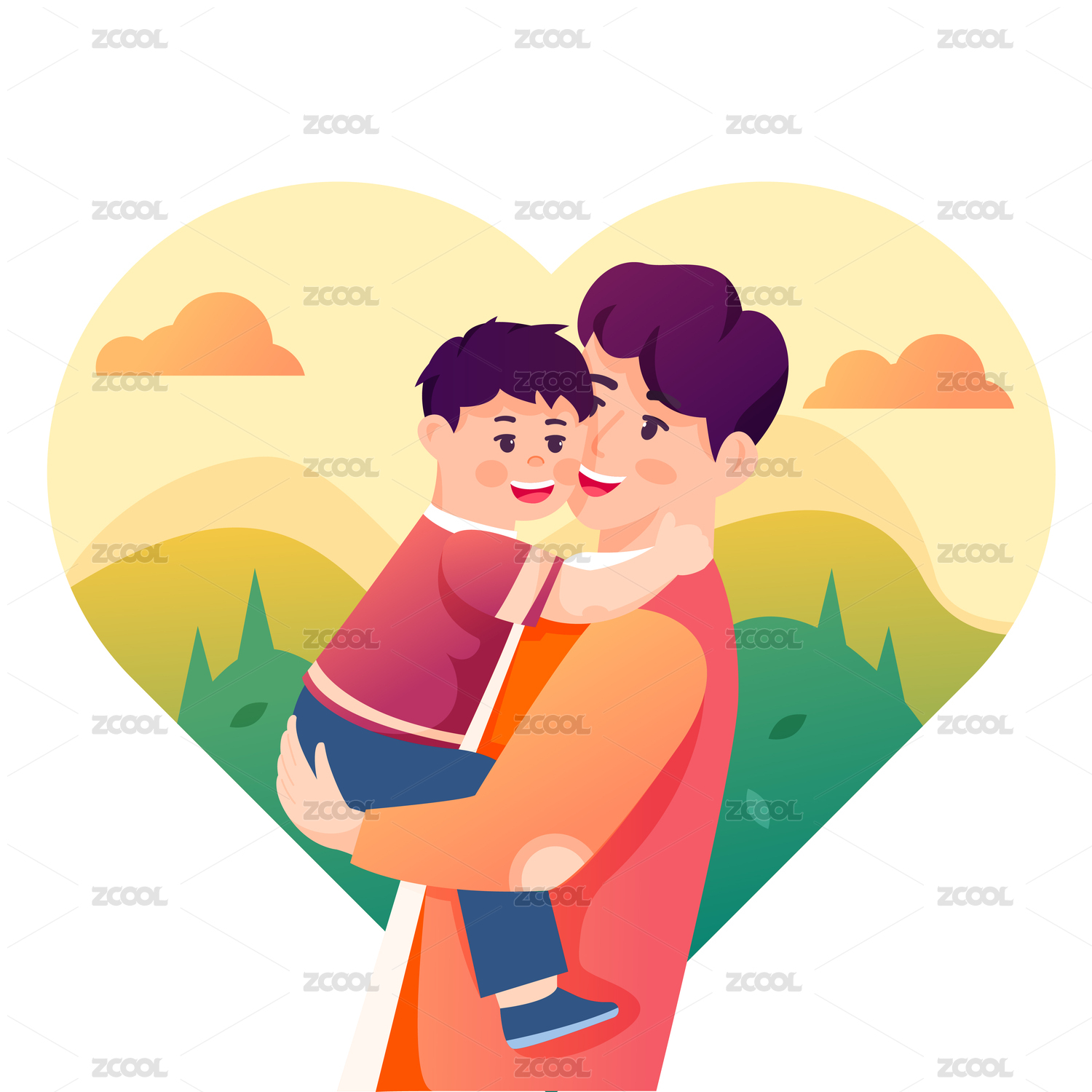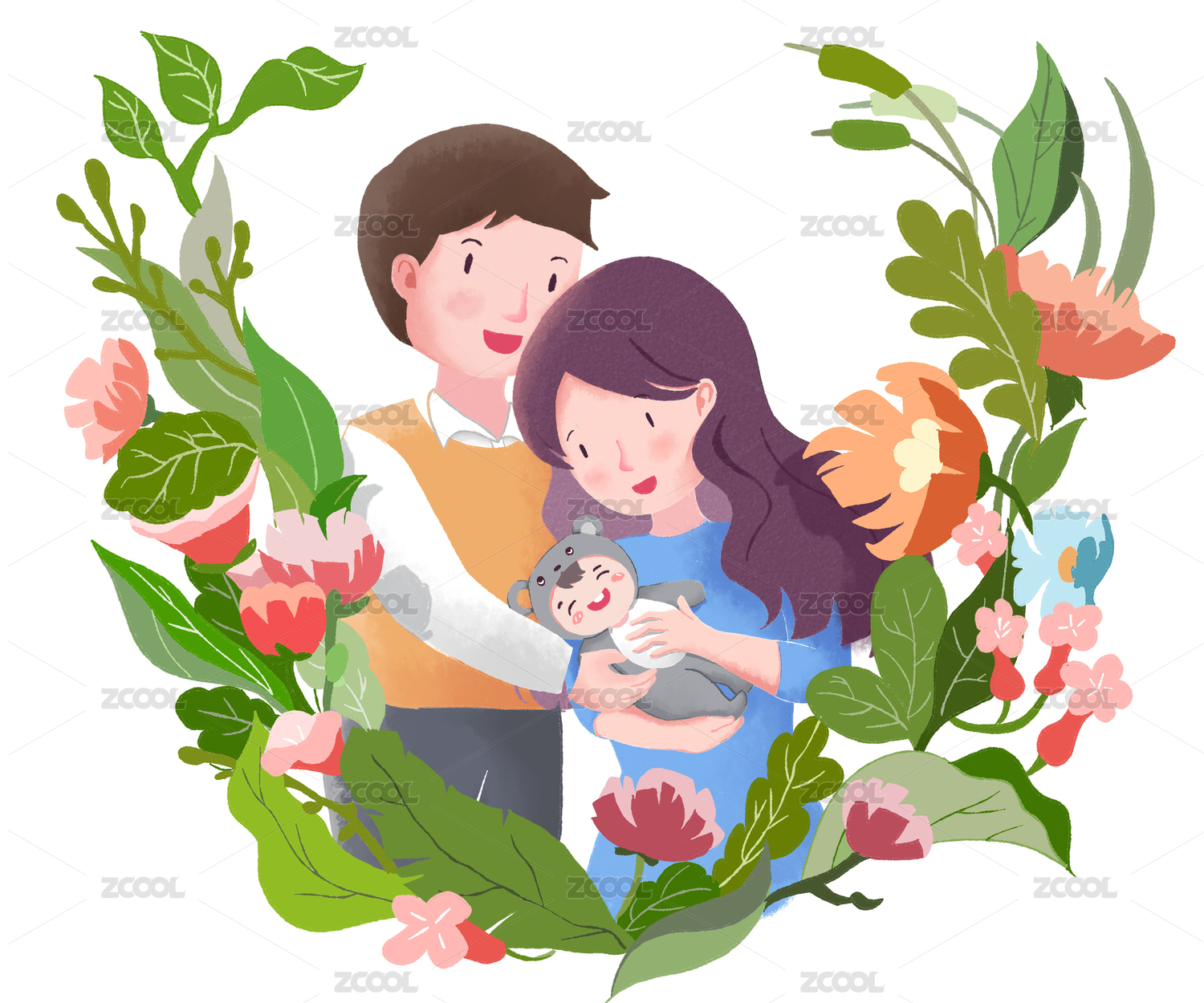 家庭,温馨,情侣装,孩子,插画,拥抱,花卉