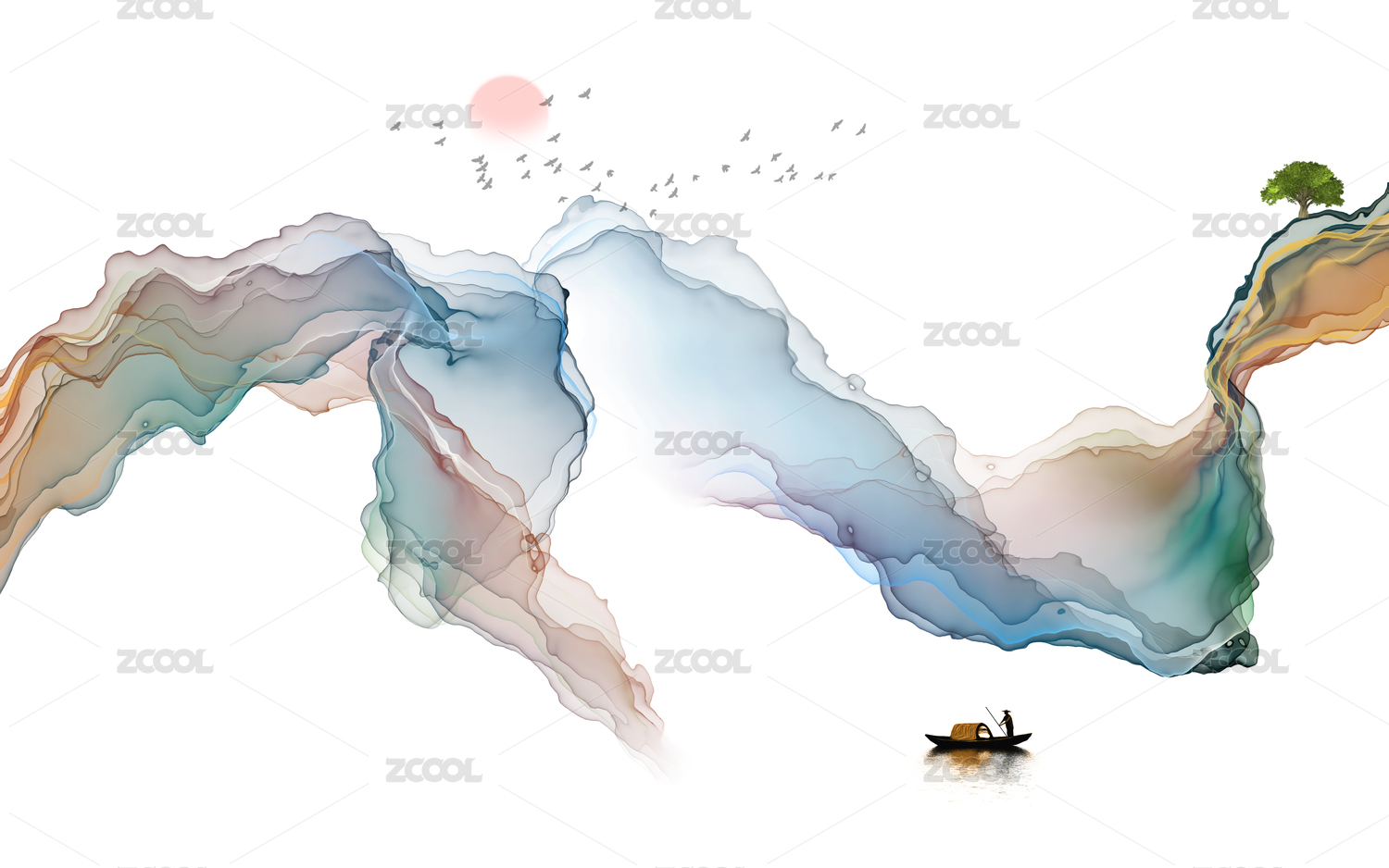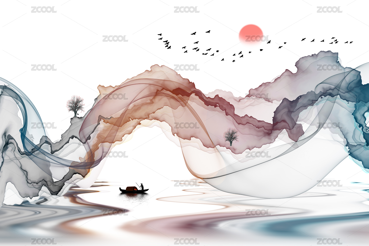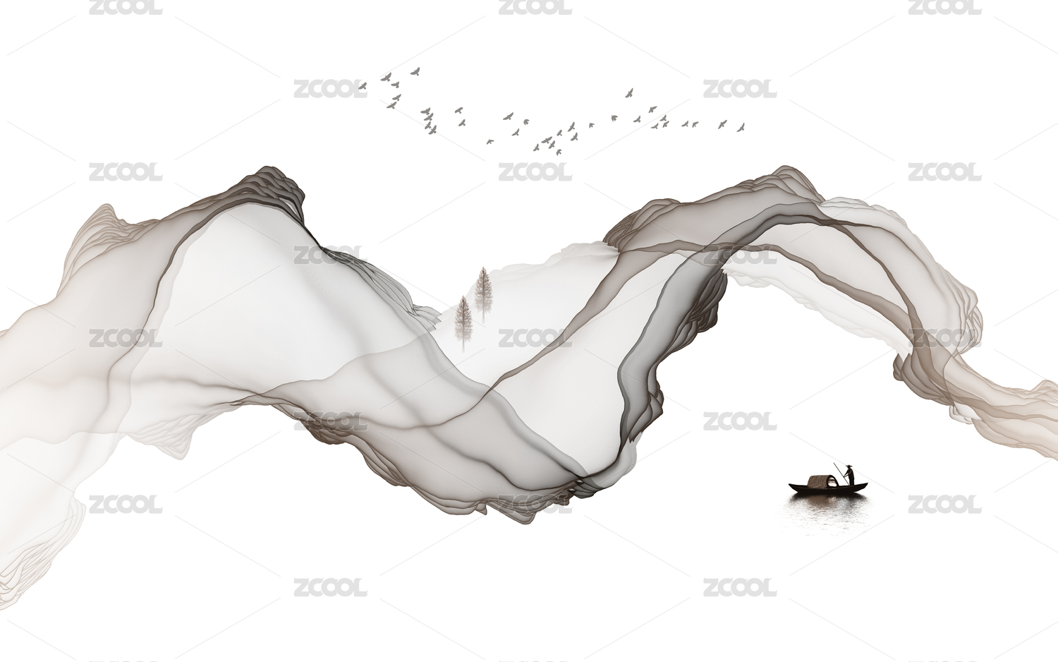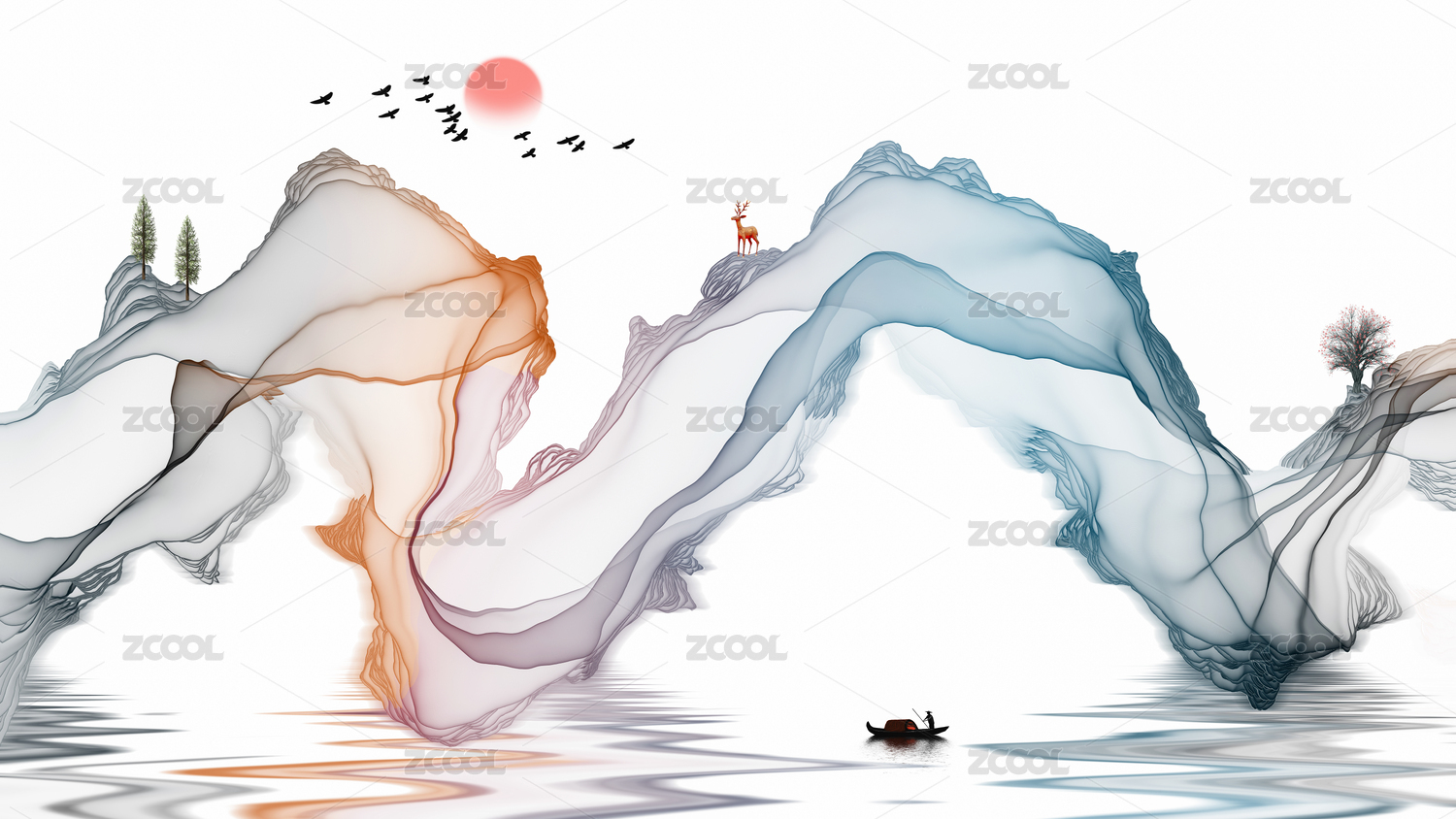 抽象艺术水墨线条新中式山水装饰画海报背景