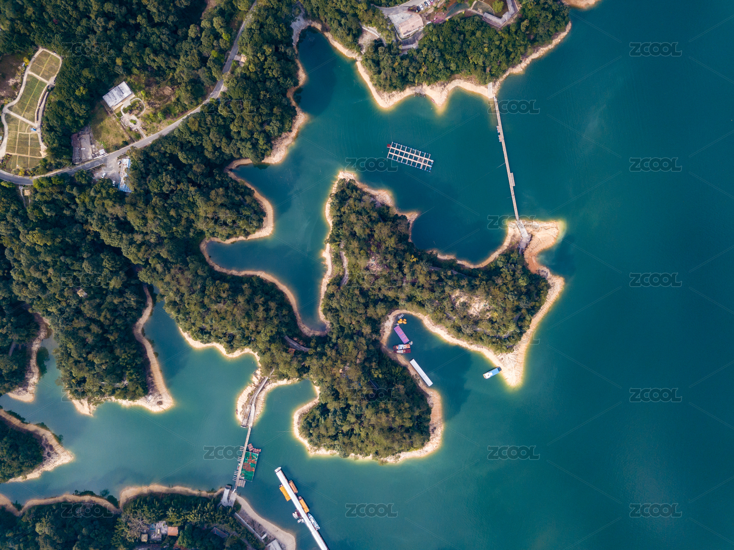 航拍中国湖南岳阳的千岛湖--水源地铁山水库