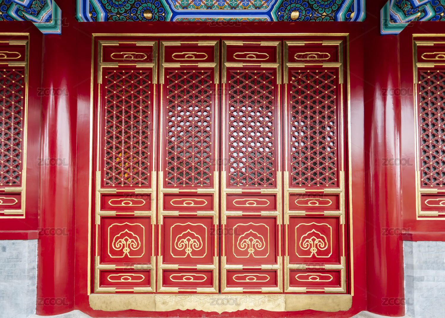 故宫红墙传统木门