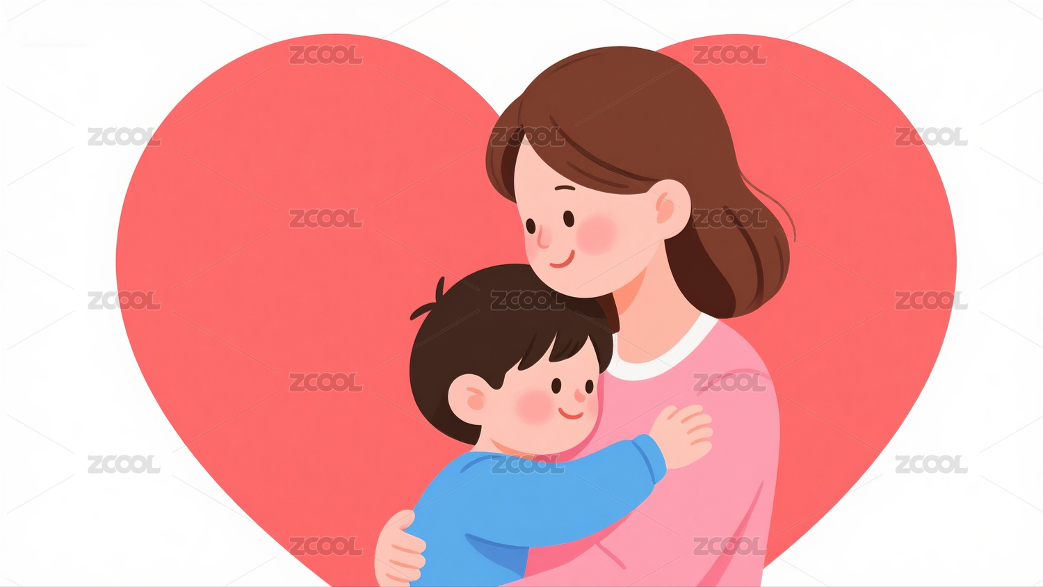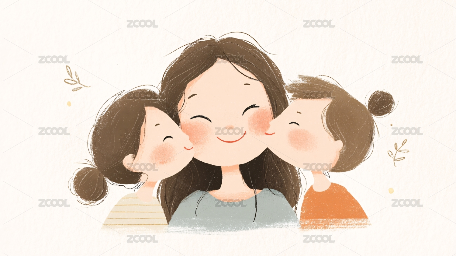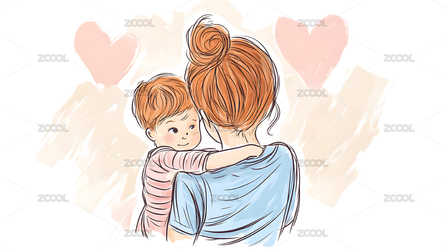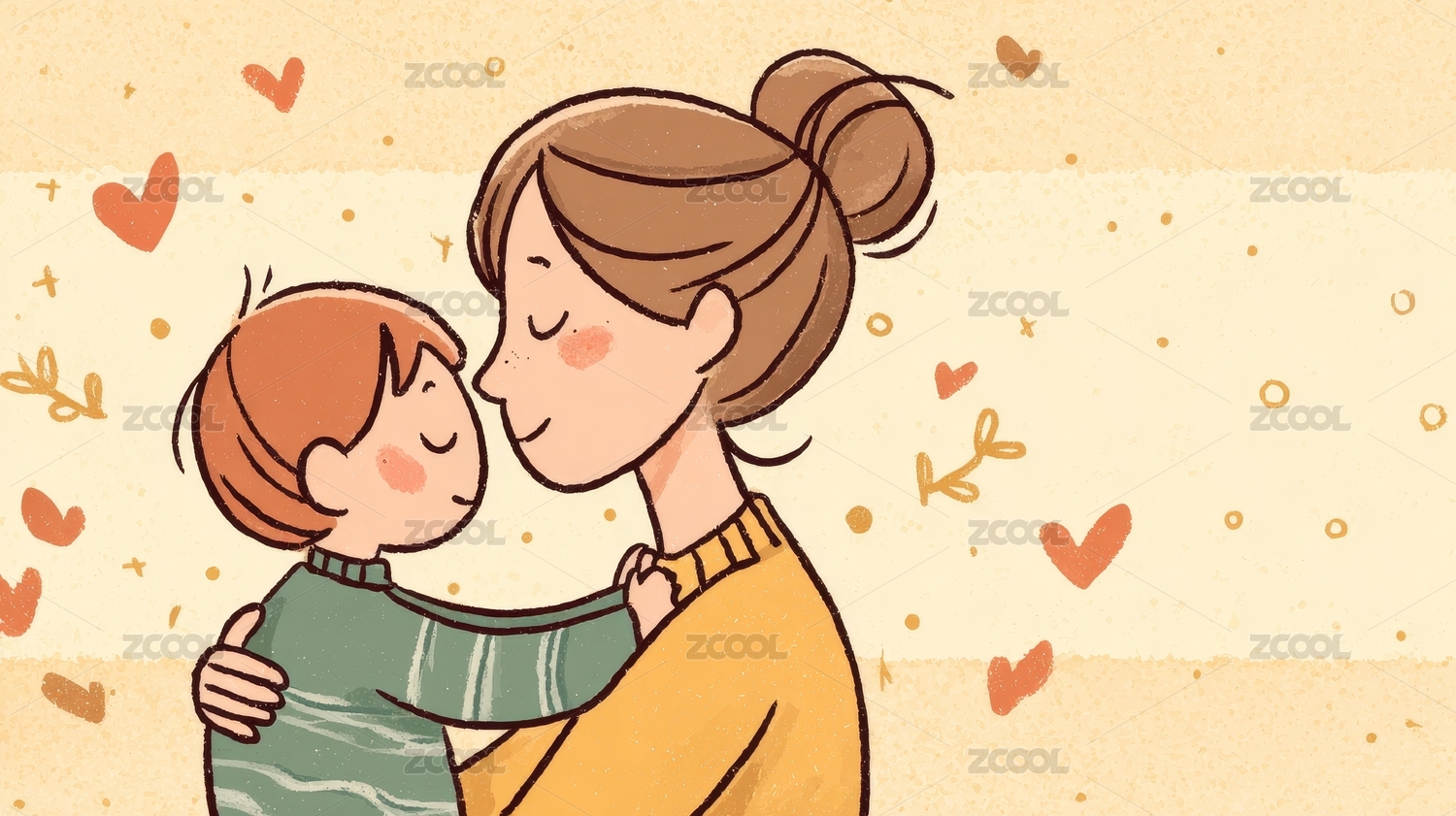 手绘,卡通,母亲节,插画,母子,家庭,温馨,母爱,妈妈