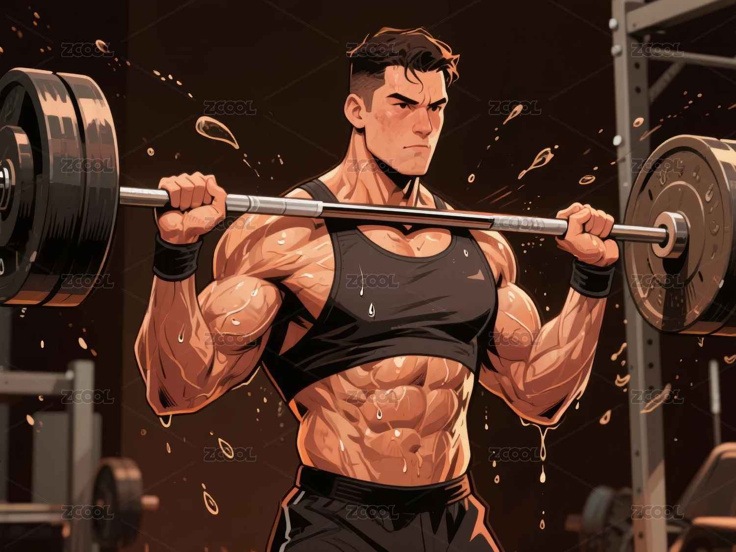 手绘,卡通,动漫,强壮,健身,肌肉,男人,插画,运动,猛男