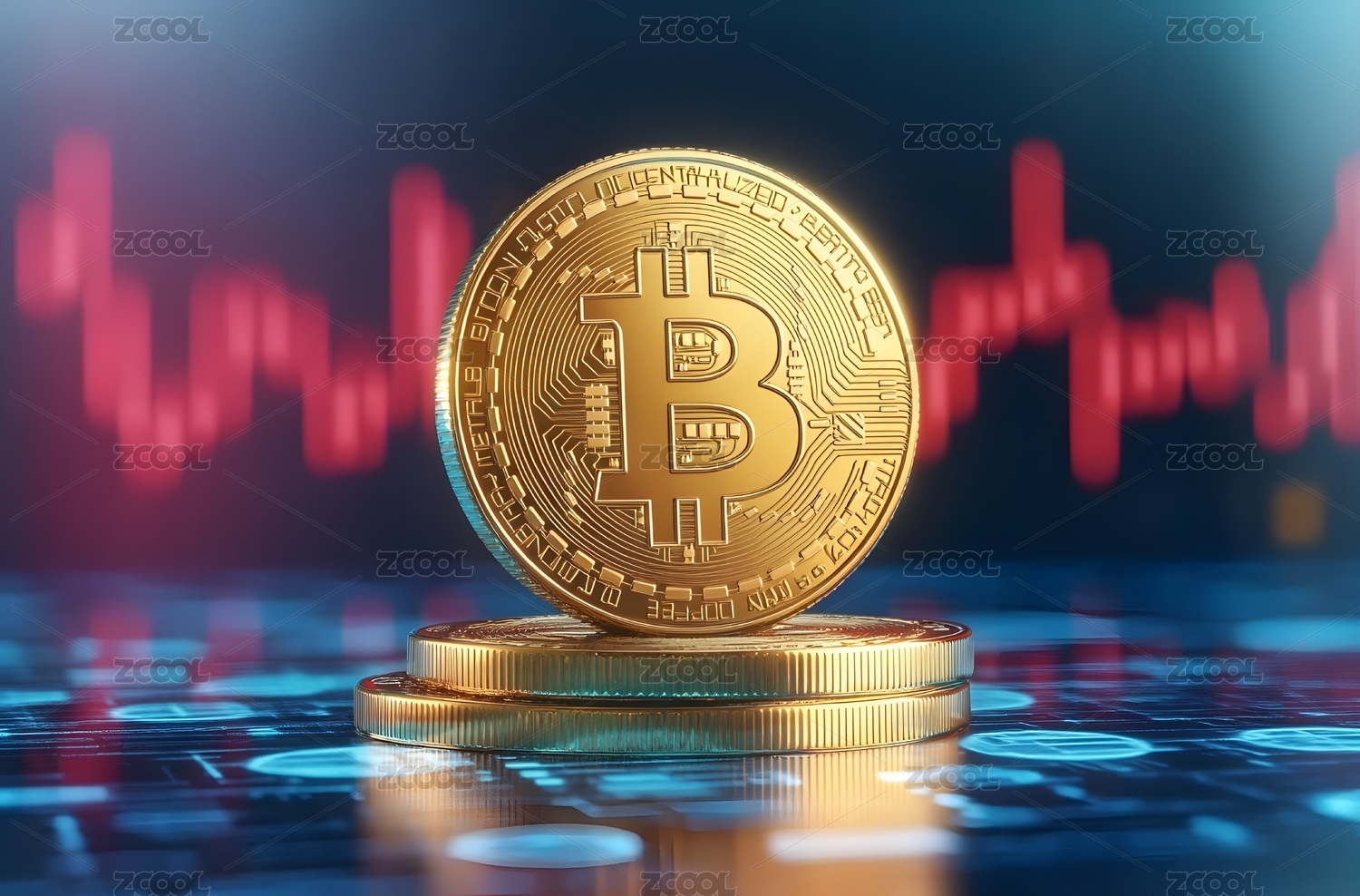 金色比特币红蓝图表背景
