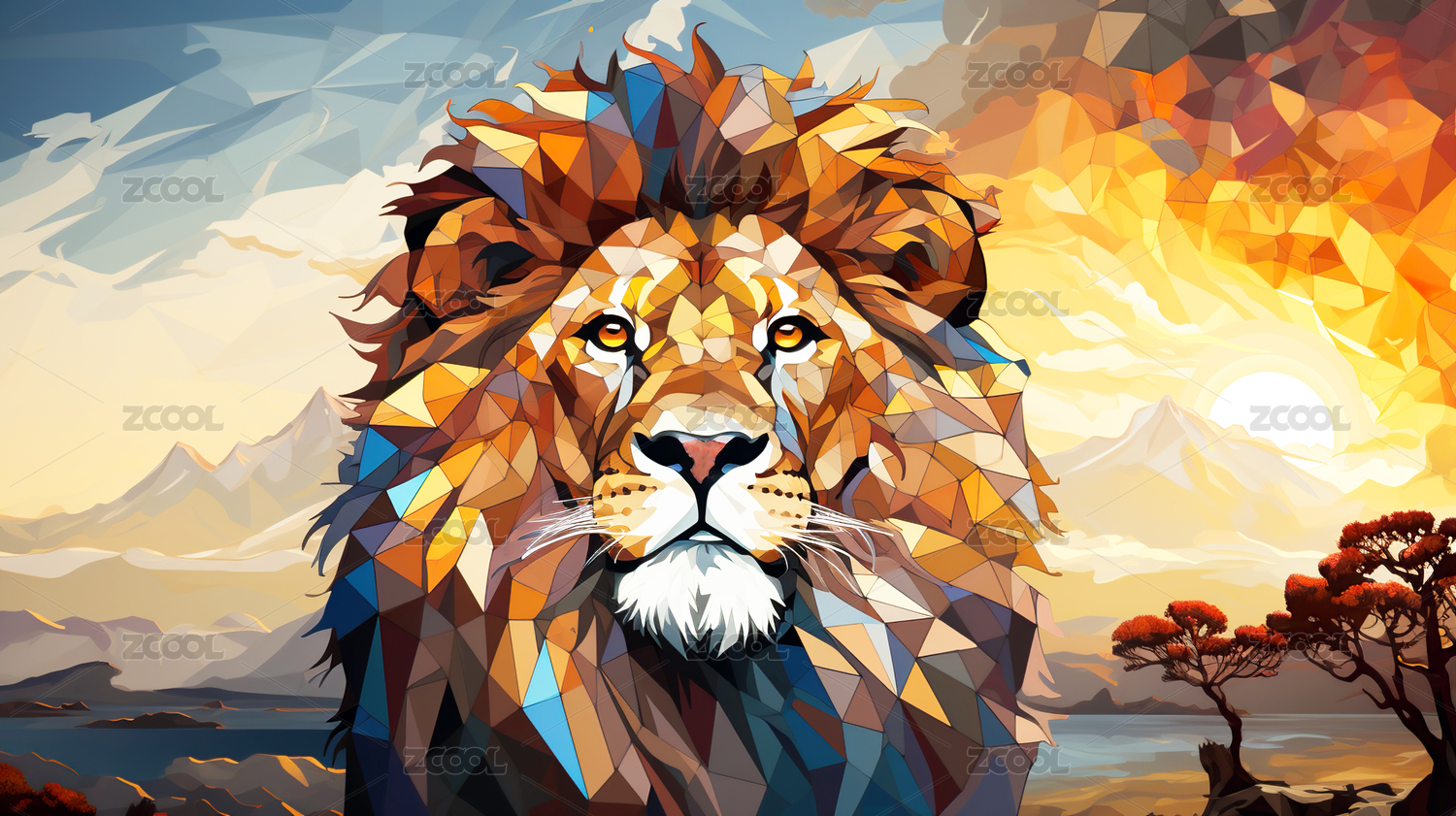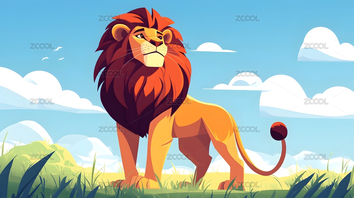 国潮,狮子,插画,动物,AIGCFG,中国风,写意