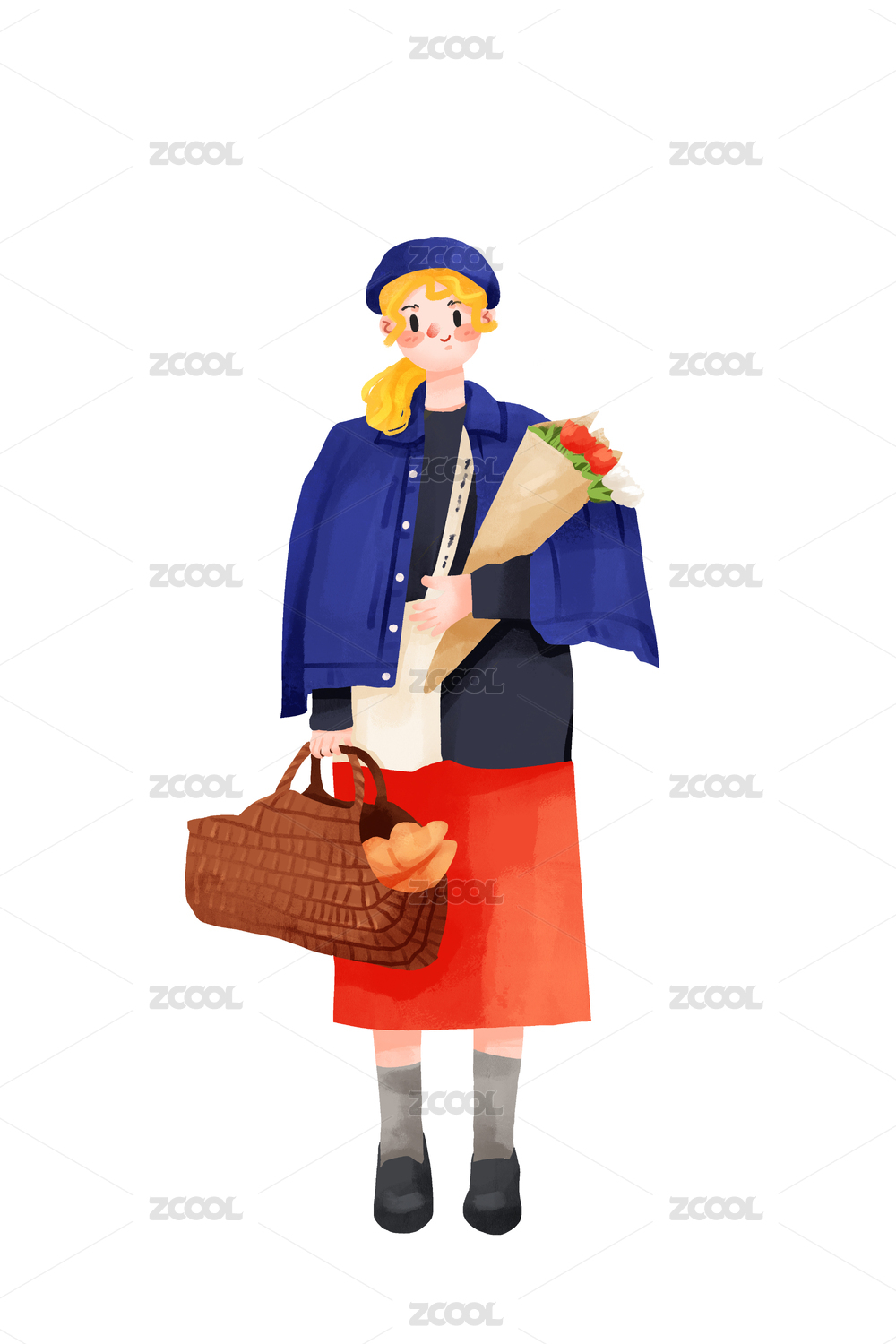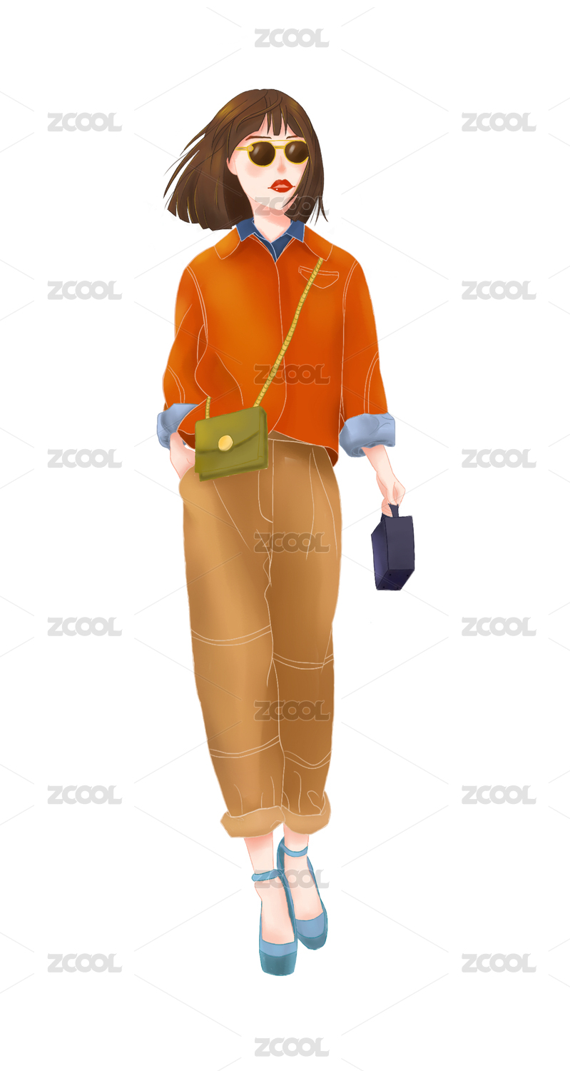 青年人,人,女人,女孩,时尚,休闲,背景分离,购物,小清新,插画