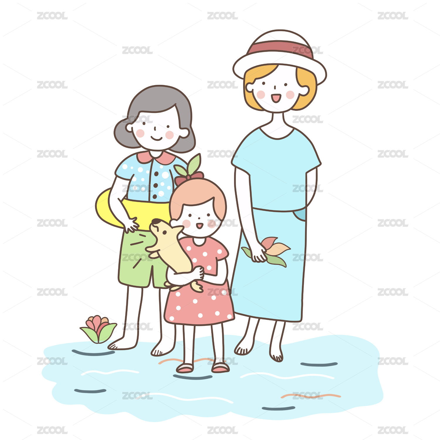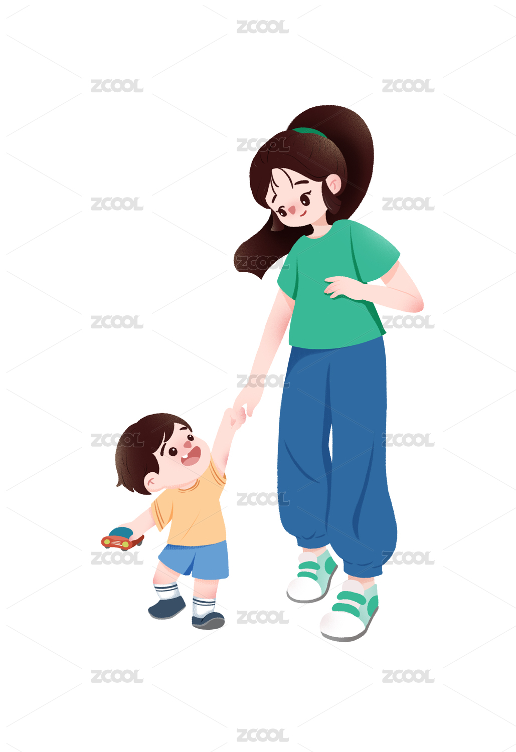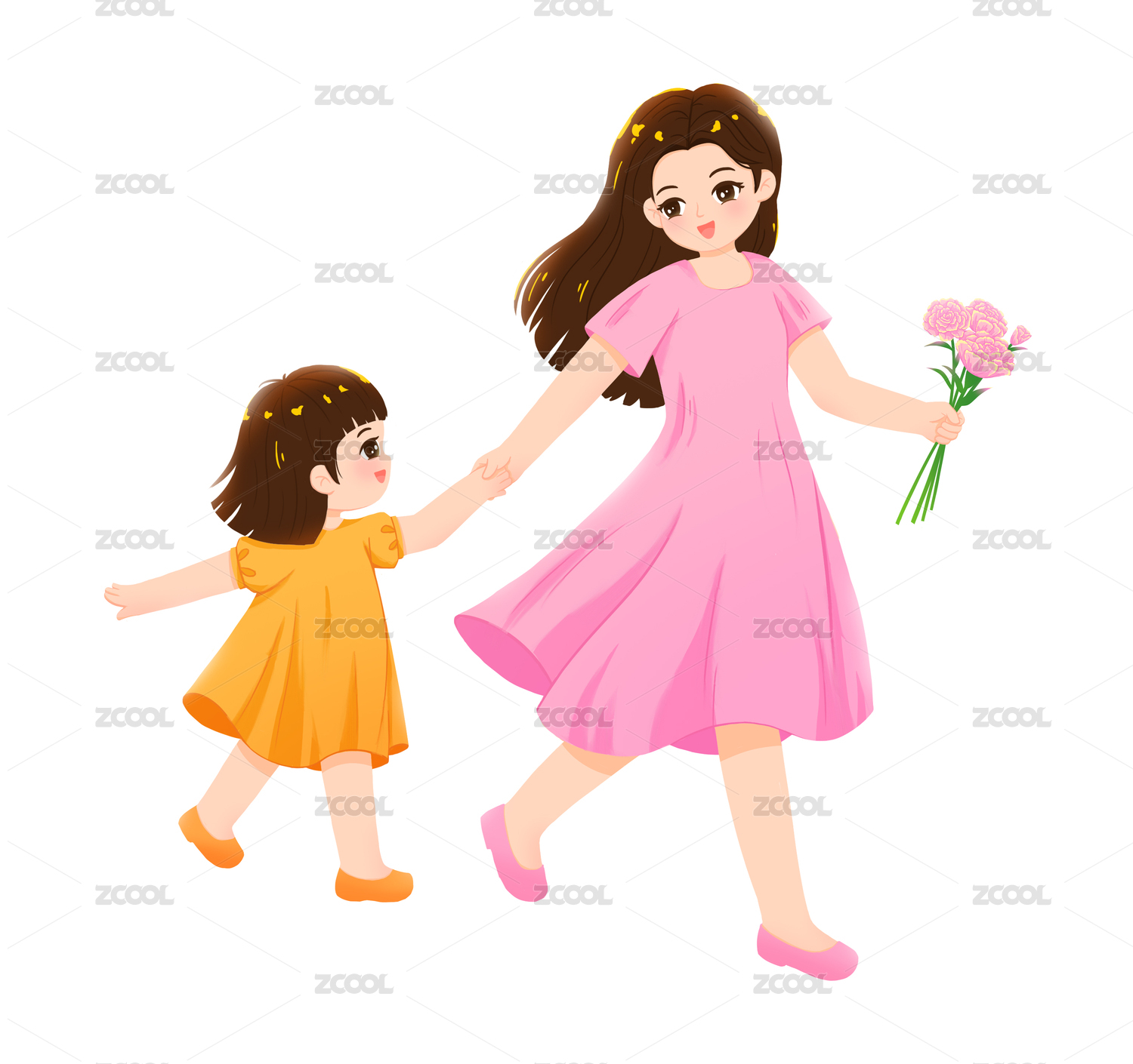 夏天妈妈牵着女儿之母亲节插画