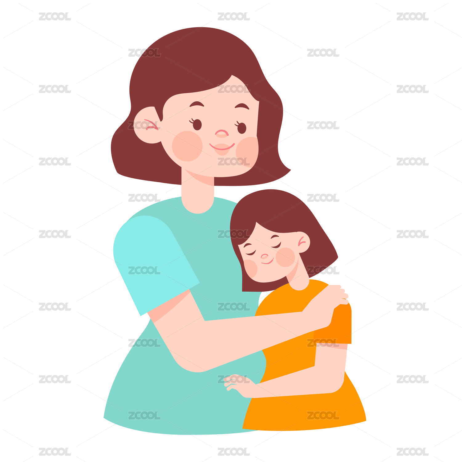 拥抱在一起的母女矢量插画