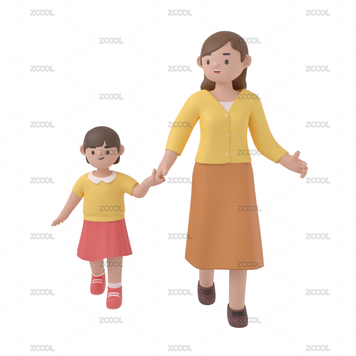 3d渲染妈妈和女儿插画