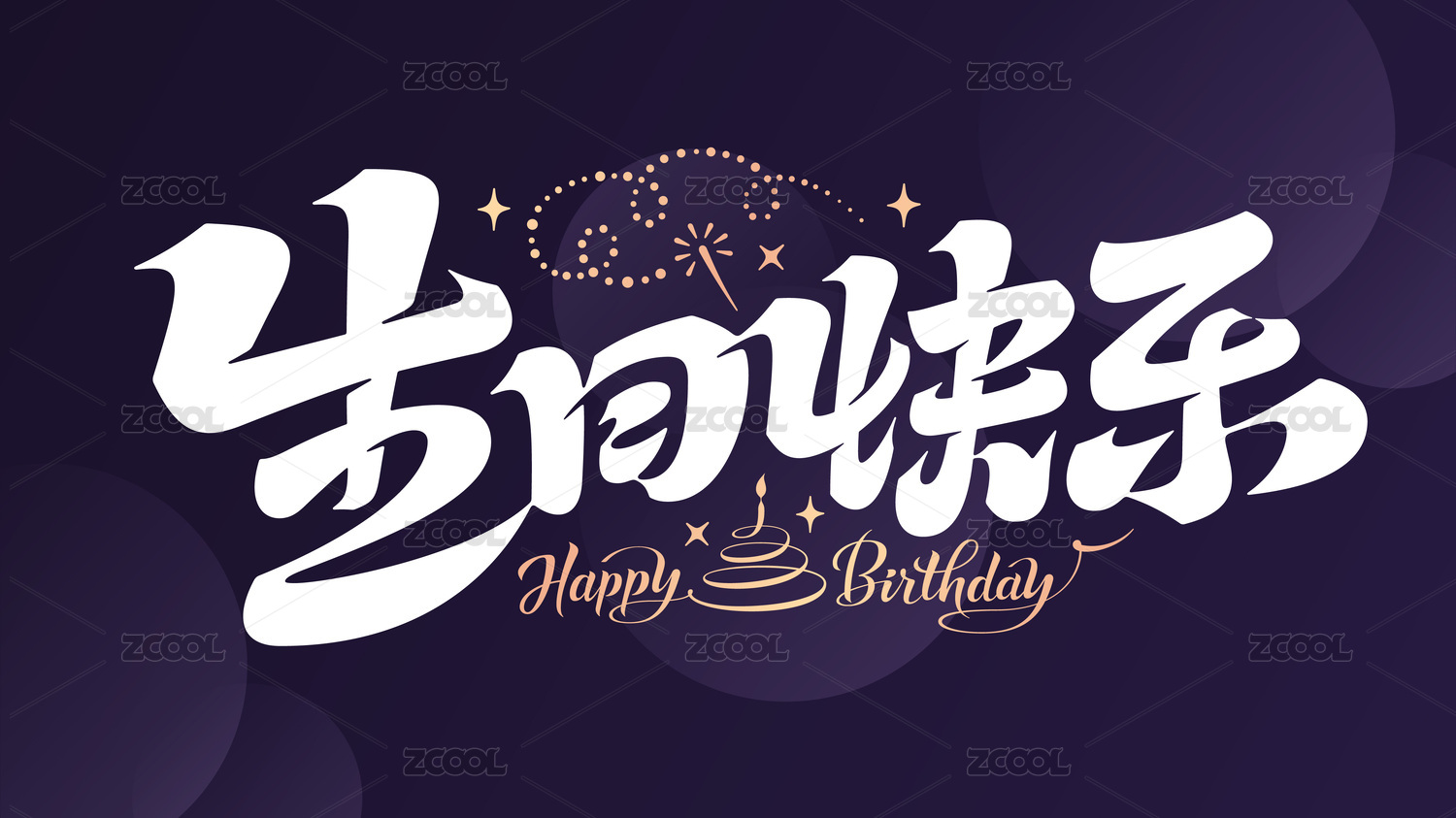生日快乐祝福语蛋糕魔法棒书法字体正方紫底