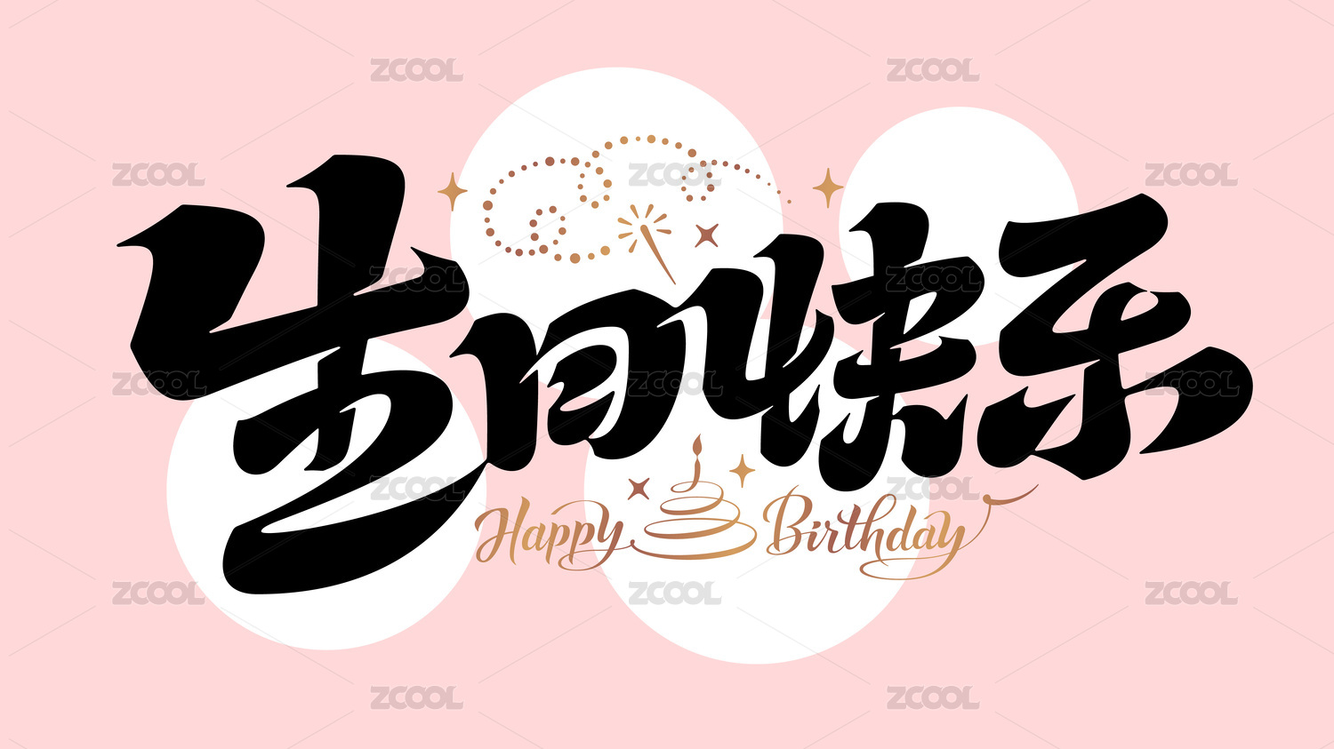 生日快乐祝福语蛋糕魔法棒书法字体横幅粉底