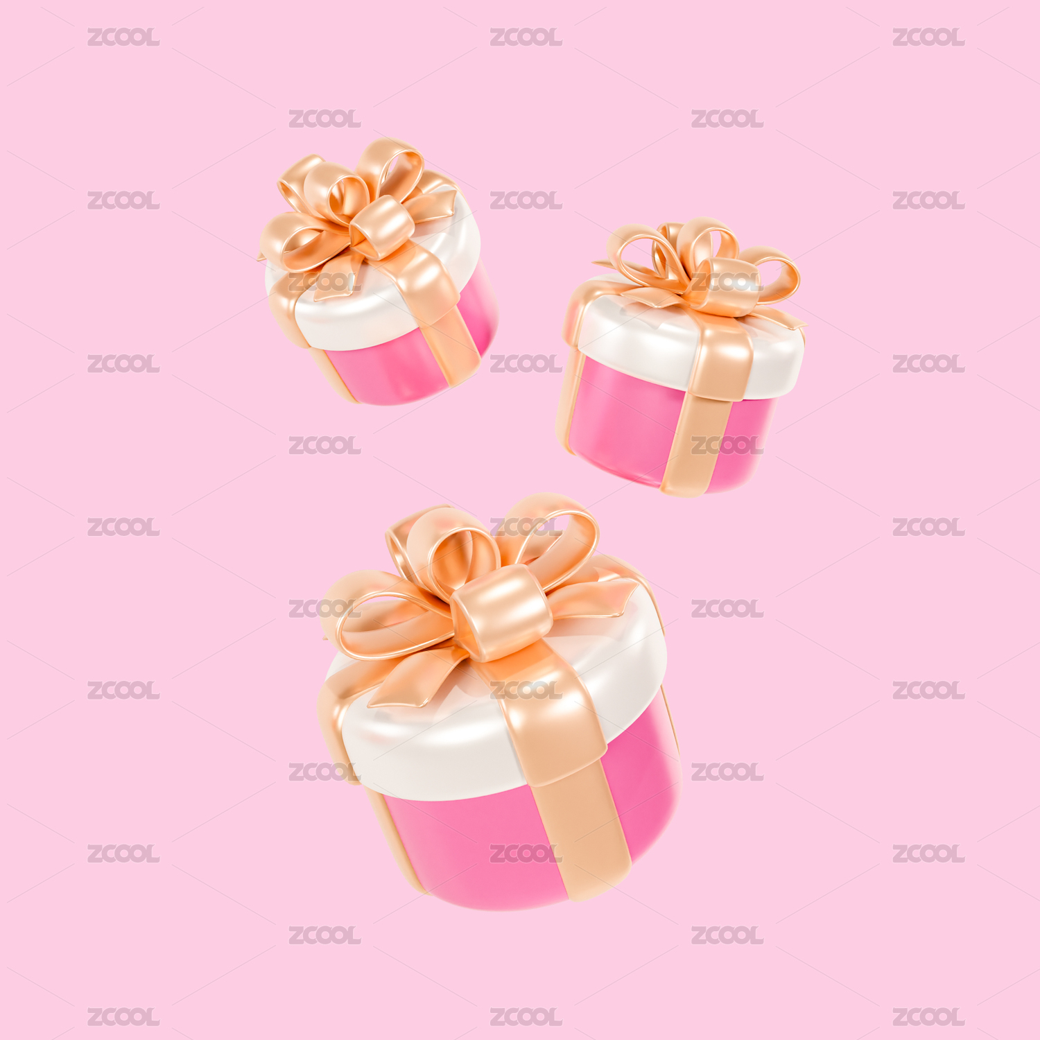 3D渲染的可爱的圆形彩色礼盒促销电商购物
