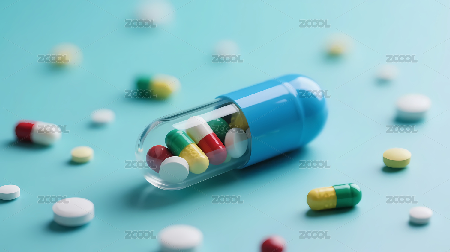 彩色药片医疗展示场景