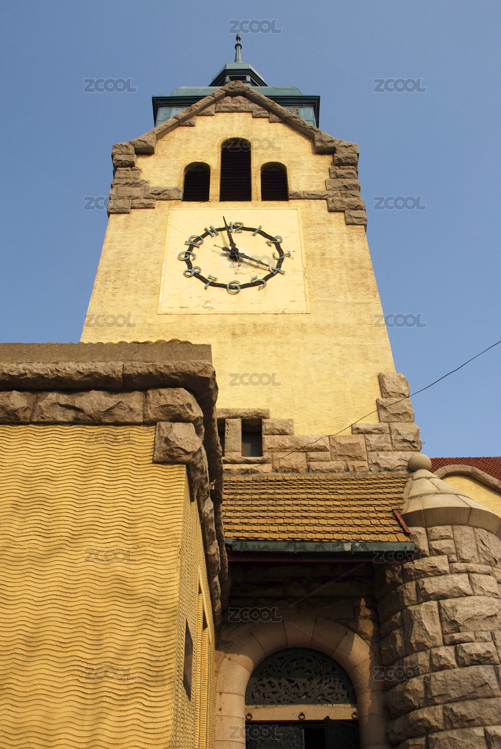 山东青岛江苏路基督教堂欧洲哥特式城堡建筑