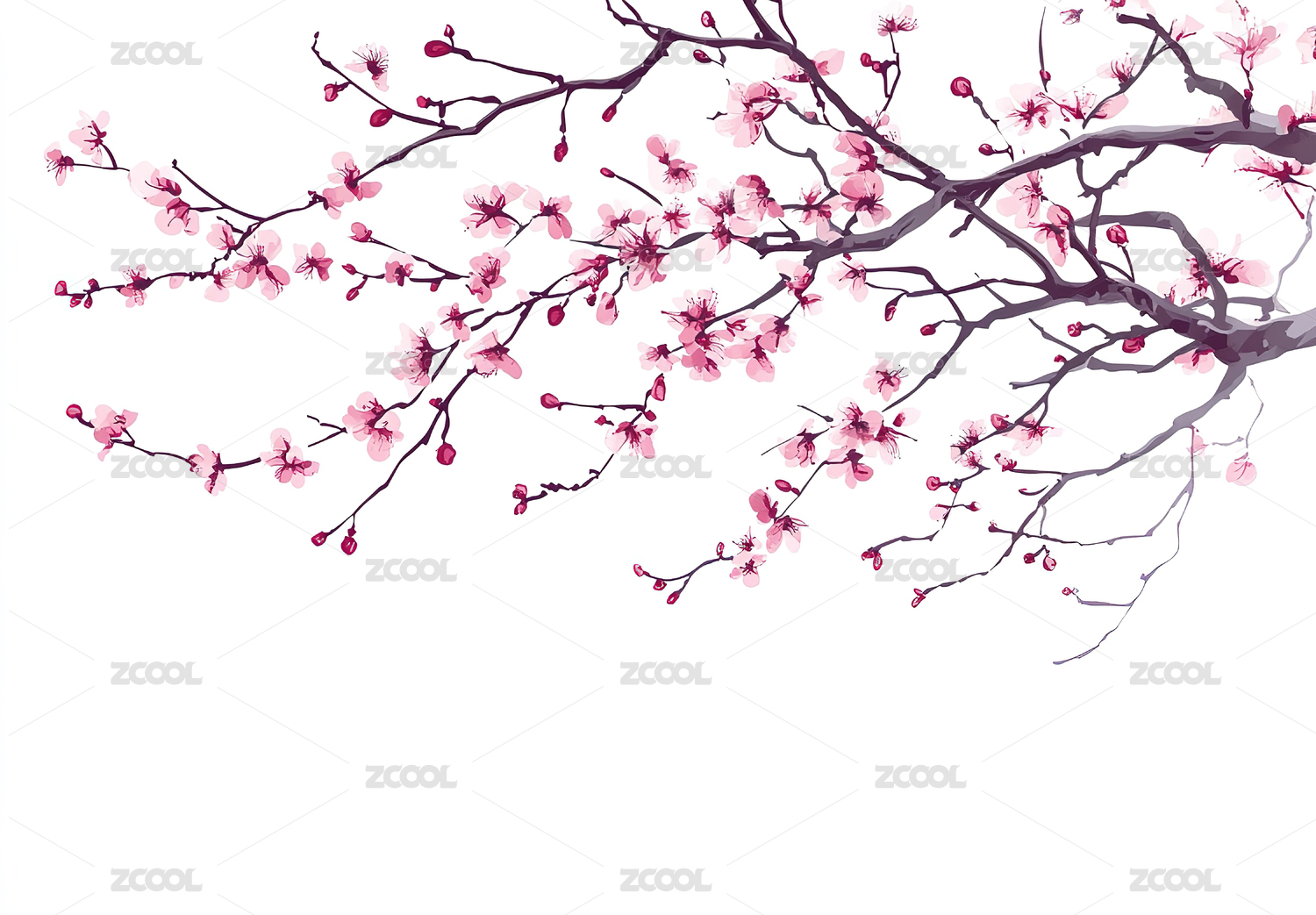 插画,元素,3D,红色,中国风,开花,景观,植物,自然,节日